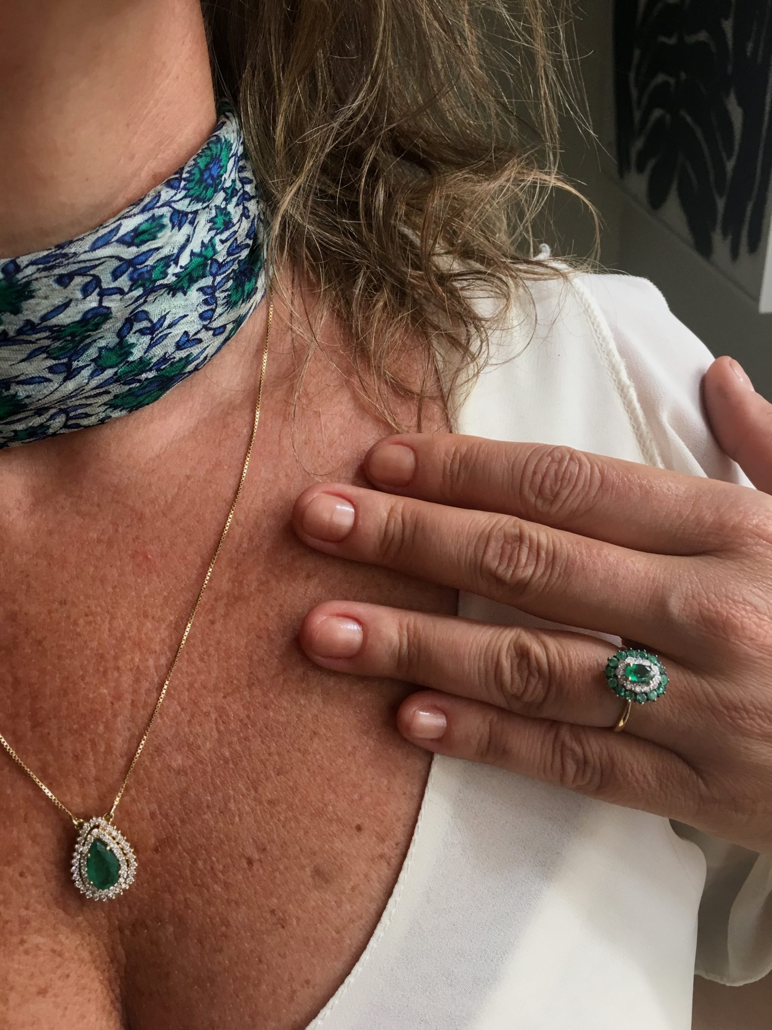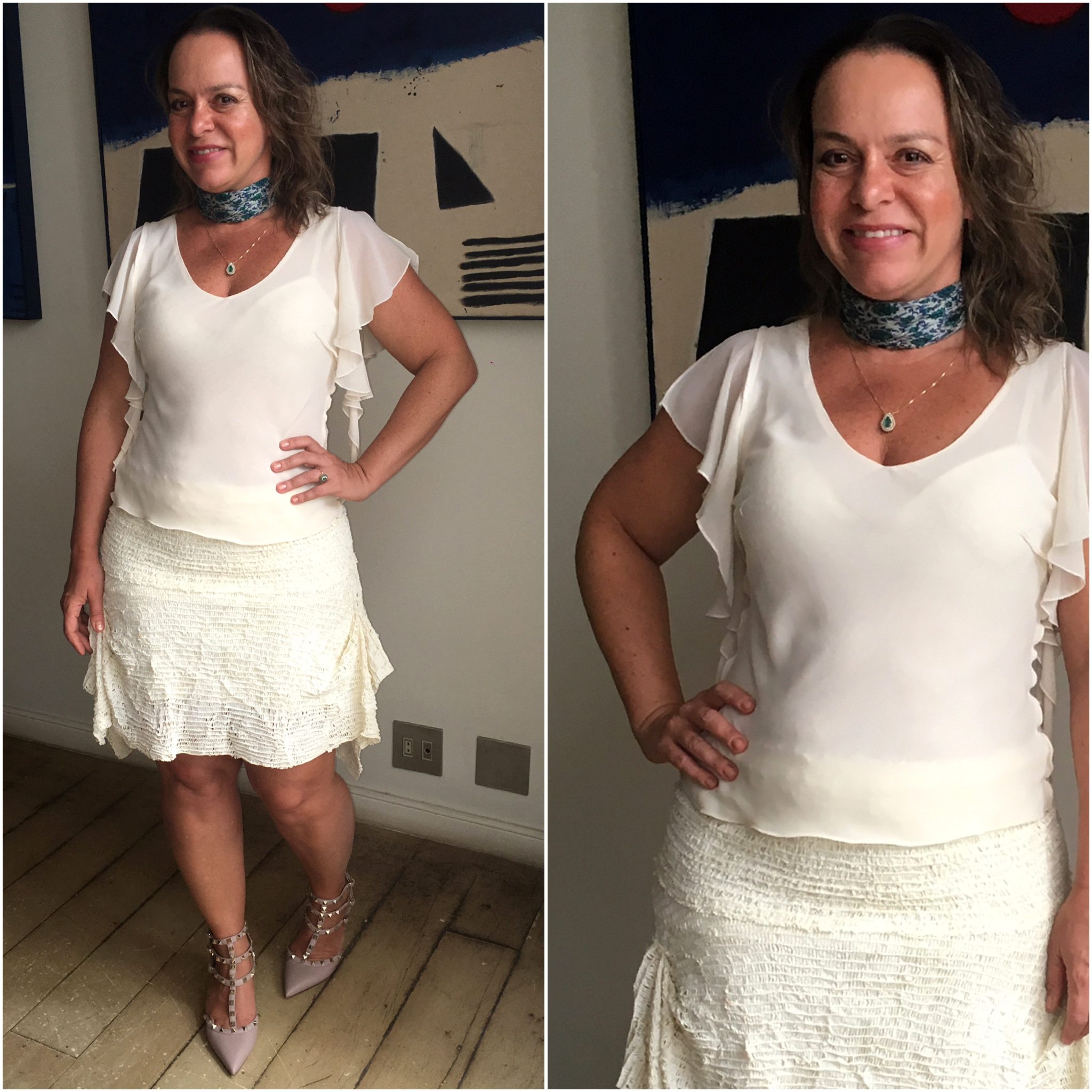 Nesse dia, usei o tal do lencinho – peça chave da estação – com colar de esmeralda compondo! Clique no azul e volte ao post.