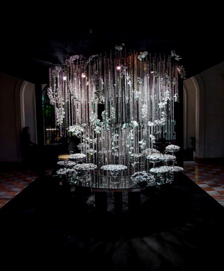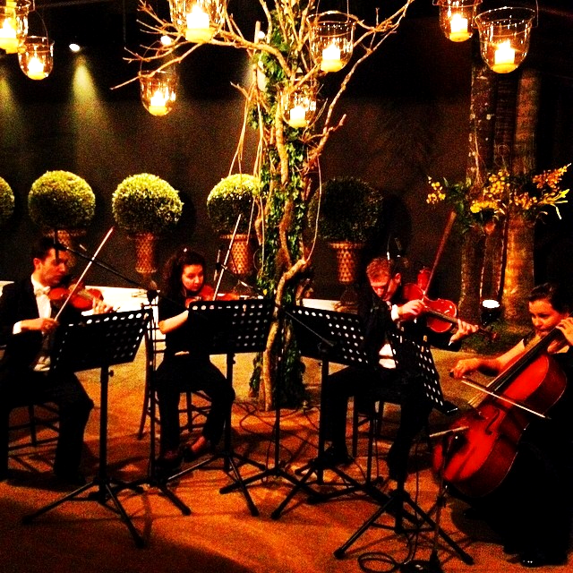 Na entrada, orquestra ao vivo sob um mundo de flores, tudo dramaticamente lindo. Eu aaamo entradas de festa diferenciadas: acho que a 1a. impressão já causa uma ansiedade gostosa do que está por vir ! E acho que com música ao vivo fica show!