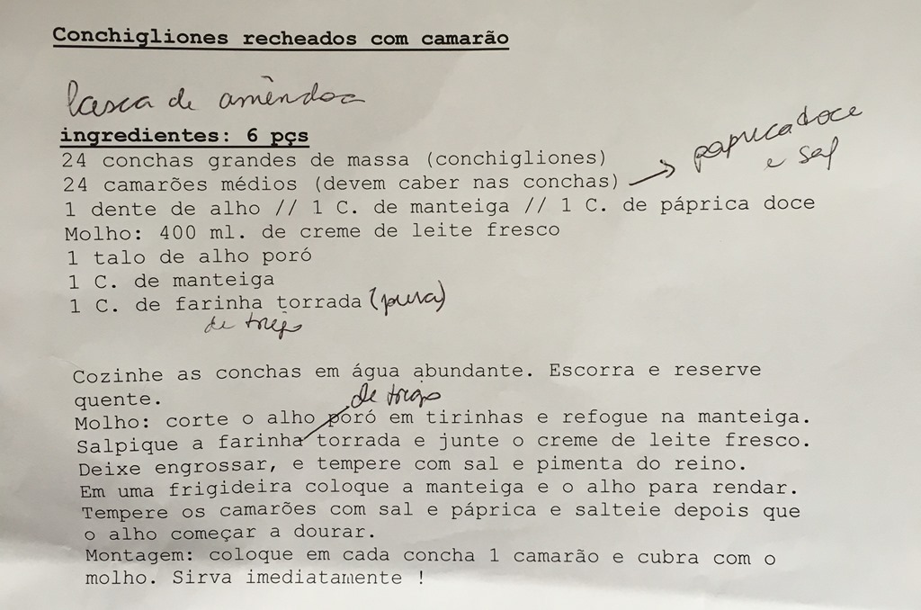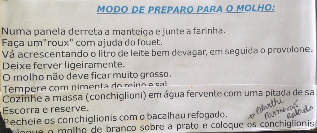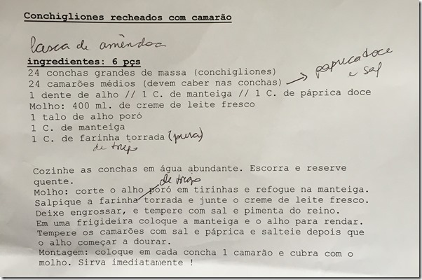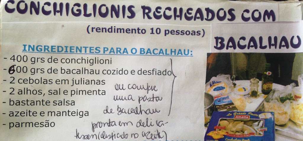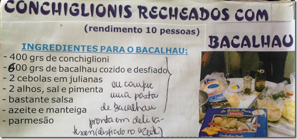 ooops! Vou aproveitar para compartilhar aqui com vocês mais uma receita de CONCHIGLIONE –- essa é da Agnes – BOUQUET GARNI –