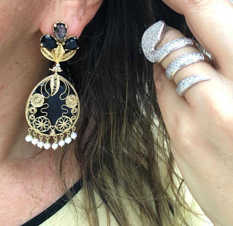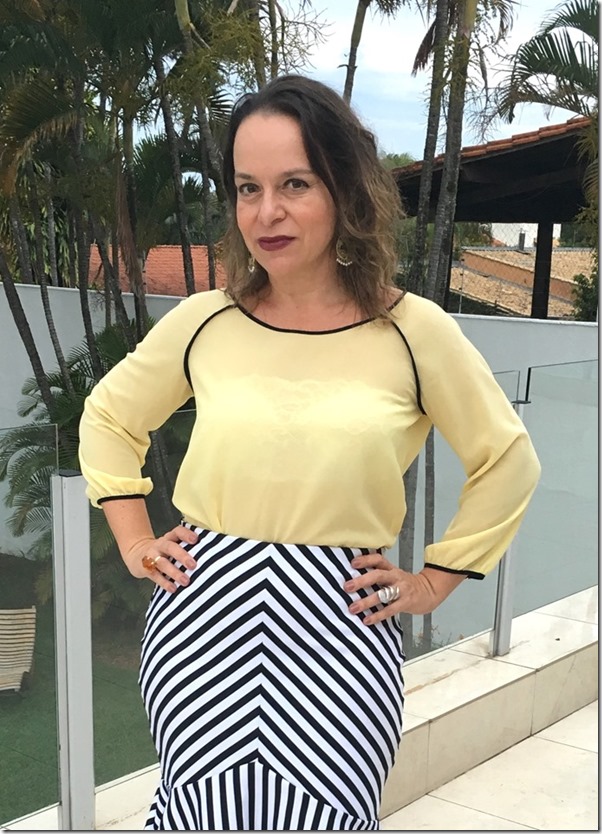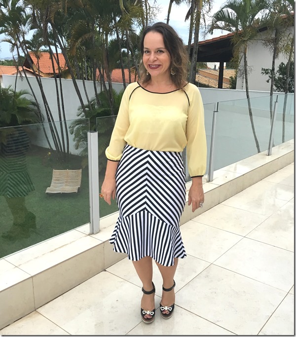 Para receber meu povo querido: look todo TAHARI ( listras em alta ) – sandália MARIA BONITA EXTRA e JÓIAS PD