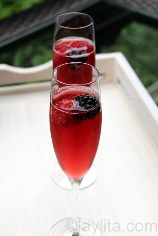 A proporção é sempre 10% de cassis para 90% de champanhe. Vale para taça também!