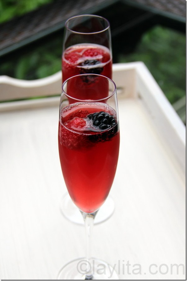 O Kir é um coquetel francês clássico feito com vinho branco e licor creme de cassis. O KIR ROYAL é preparado com champagne em vez do vinho branco, e eu prefiro! Além disso, gosto também de adicionar frutas vermelhas .
