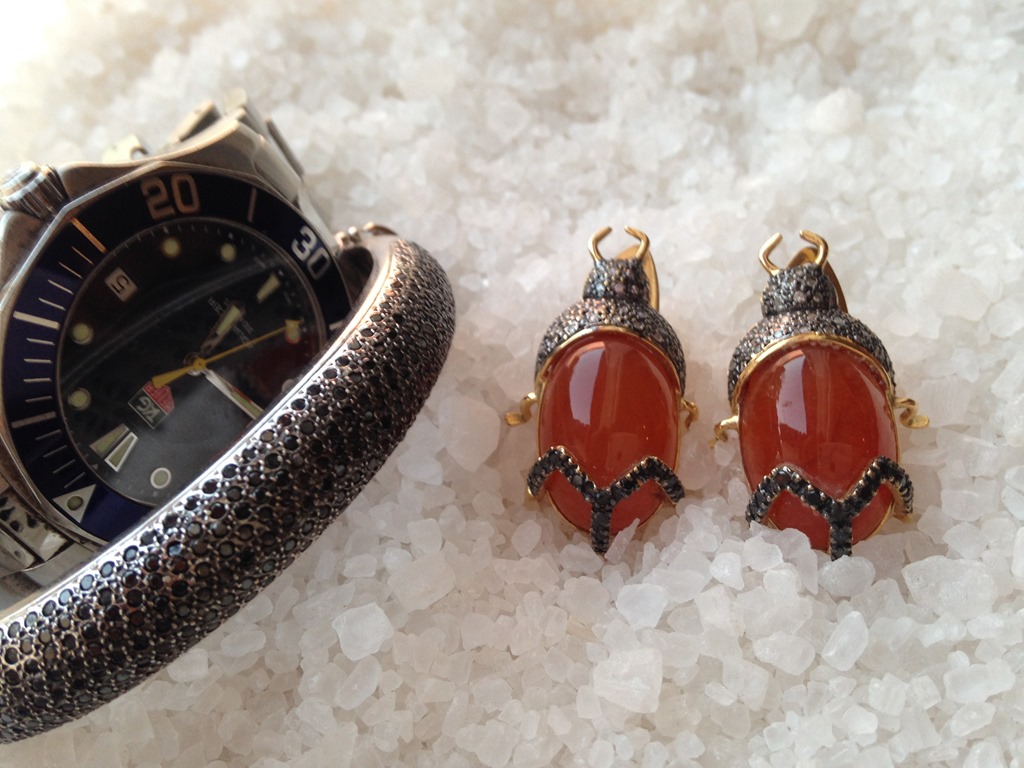 o laranja e o preto das jóias conversaram com o look Polegar para cima