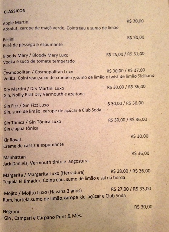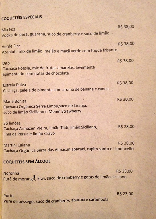 O restaurante é mais uma casa de Alex Atala nos Jardins – Rua Padre João Manuel – e serve comida brasileira de 1a. e drinks também. E como o assunto era drinks …