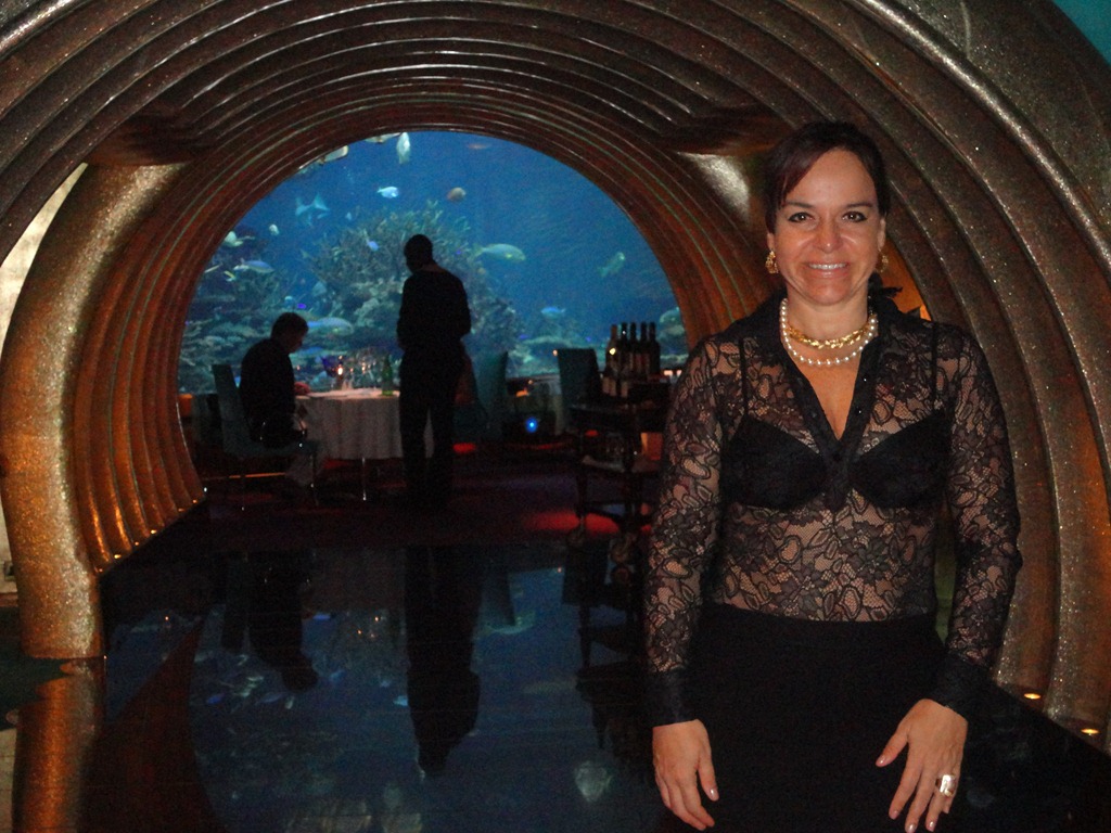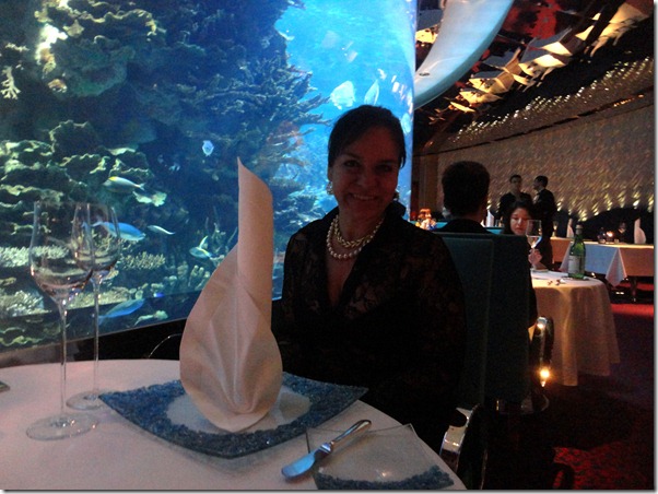 Fora essa tarde/ noite no deserto, as outras 2 noites foram também programas bem turísticos: Jantar no Burj Kalifa, no andar 123 do prédio mais alto do mundo e Jantar no Burj Arab , esse sim , maravilhoso, dentro de um aquário, menu de frutos do mar espetacular, uma experiencia linda! Super indico! ( mas reserve, viu? super dificil entrar! )
