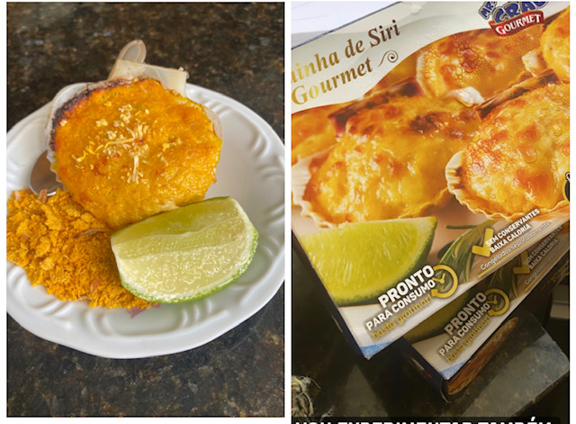 Aqui em casa servi de entrada empadas e pastéis de camarão fritos na hora. Na sequência uma casquinha de siri com farofinha temperada e limão.