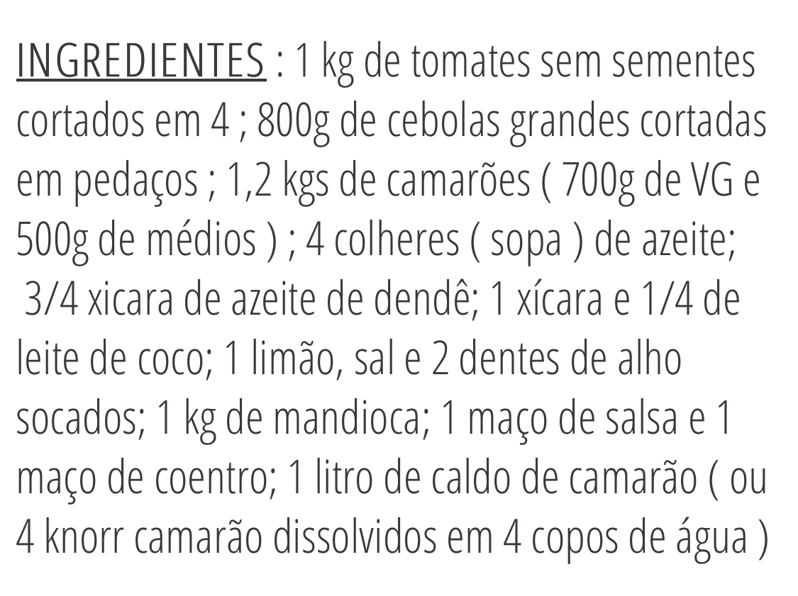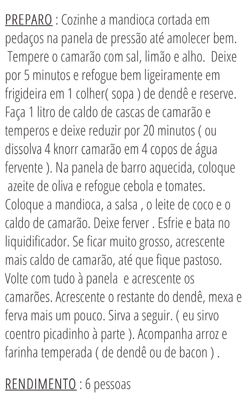 E como prato principal, um BOBÓ DE CAMARÃO de comer de joelhos, receita que sempre que faço aqui em casa, faz um sucesso danado.