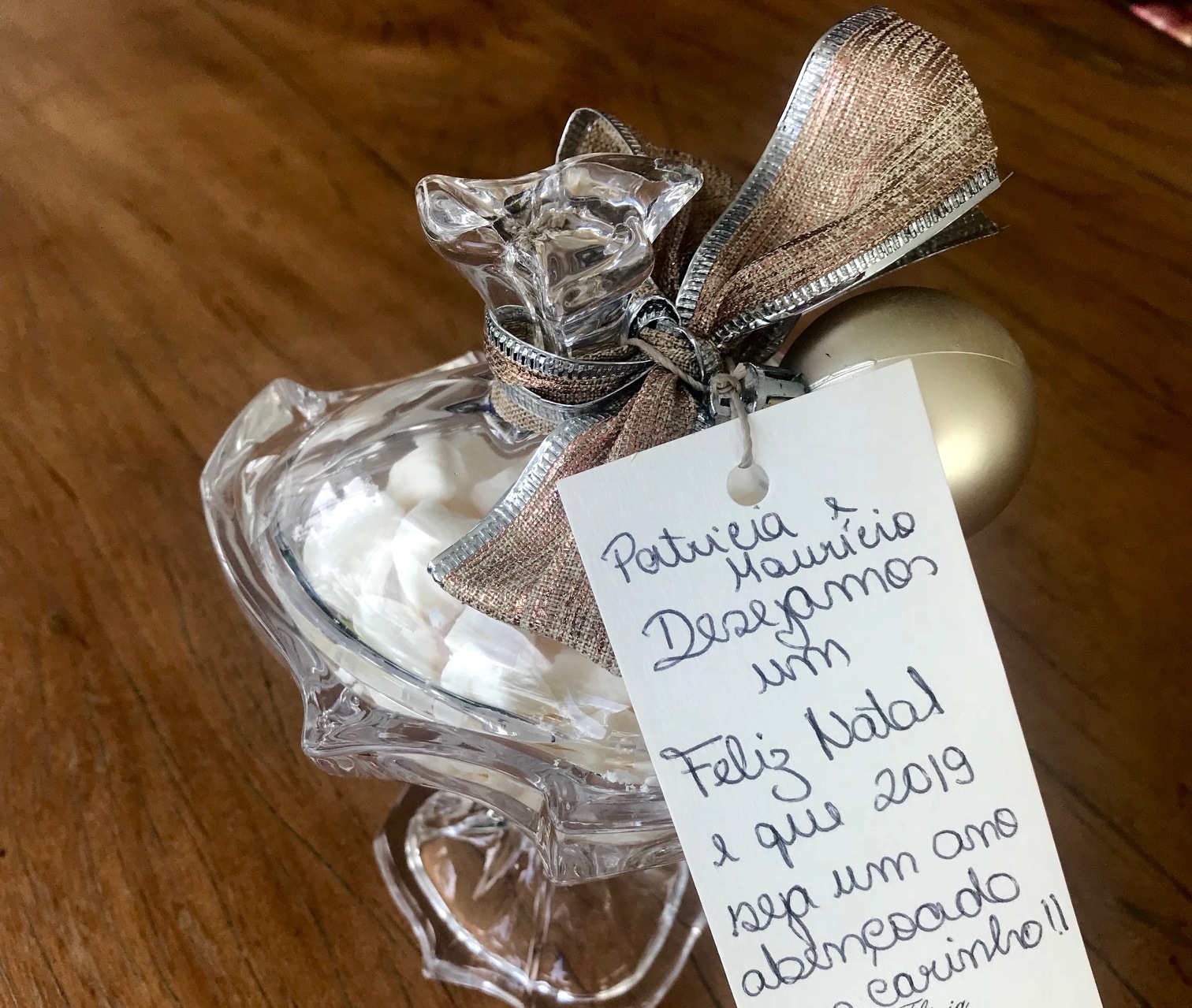 Na saída, cada casal ainda recebeu um mimo especial com cartão escrito â mão. Poderia ser mais fofa?