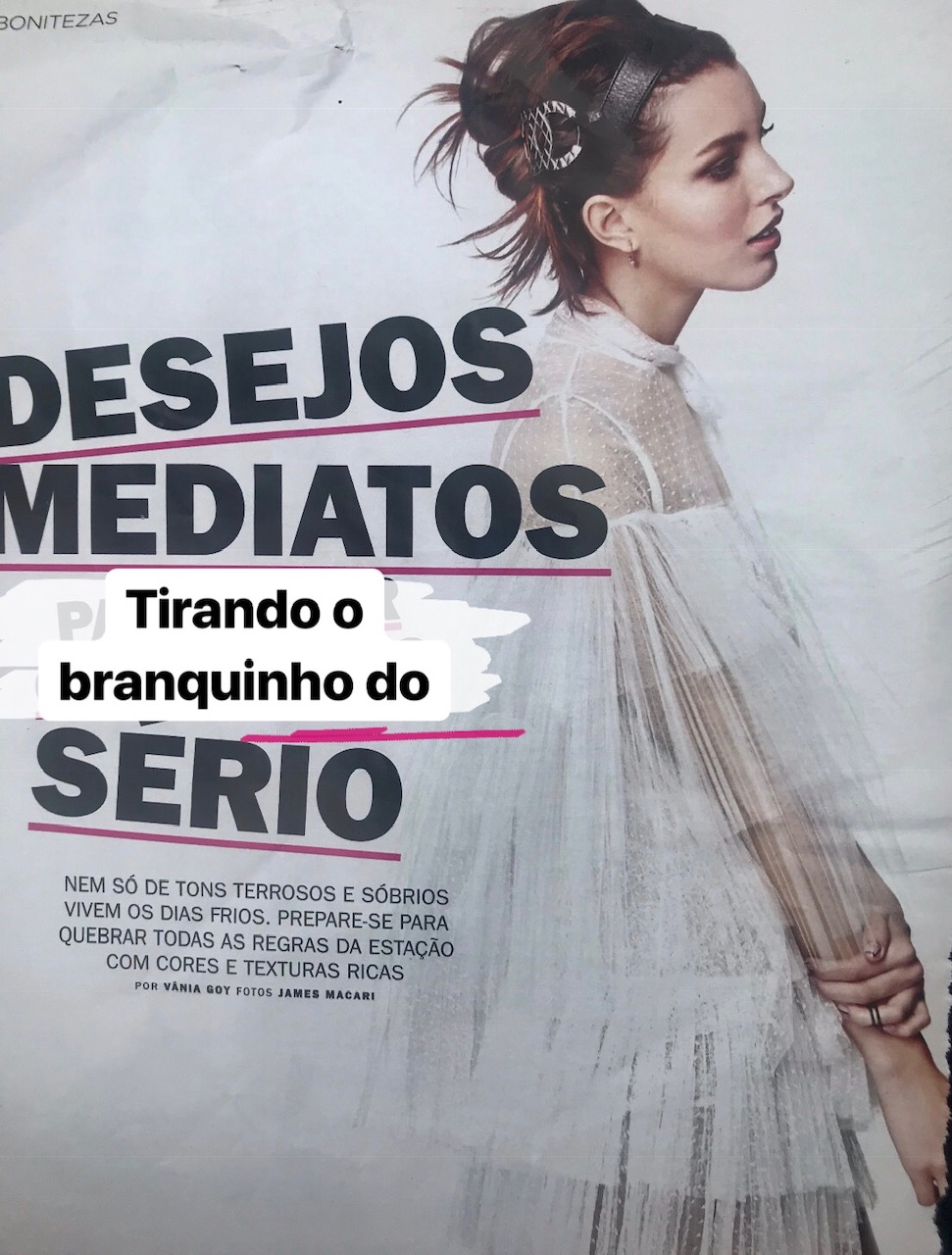 Em resumo, a ideia era essa: cabelos desalinhados, make marrom, acessórios diferenciados.Completei com joias em brilhantes brown. Enfim, essa foi a minha fórmula para modernizar um look all white bem clássico.