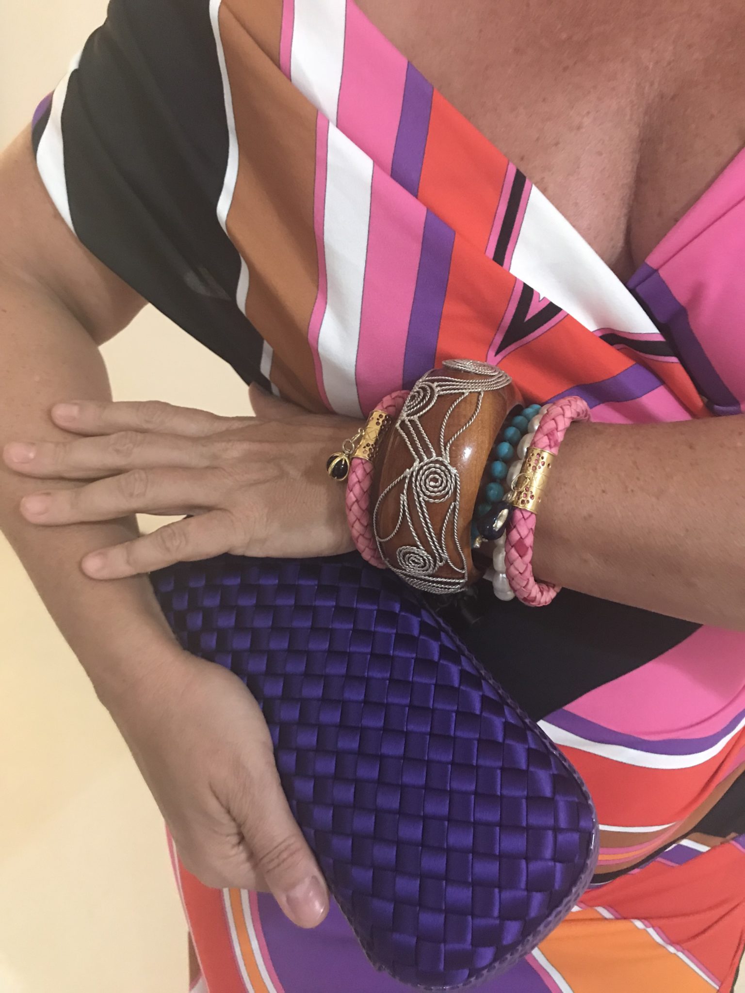Para essa noite, eu elegi um longo PUCCI, montei um mix de pulseiras JOIAS PD e arrematei com um brinco glamouroso fazendo um mix-and-match.