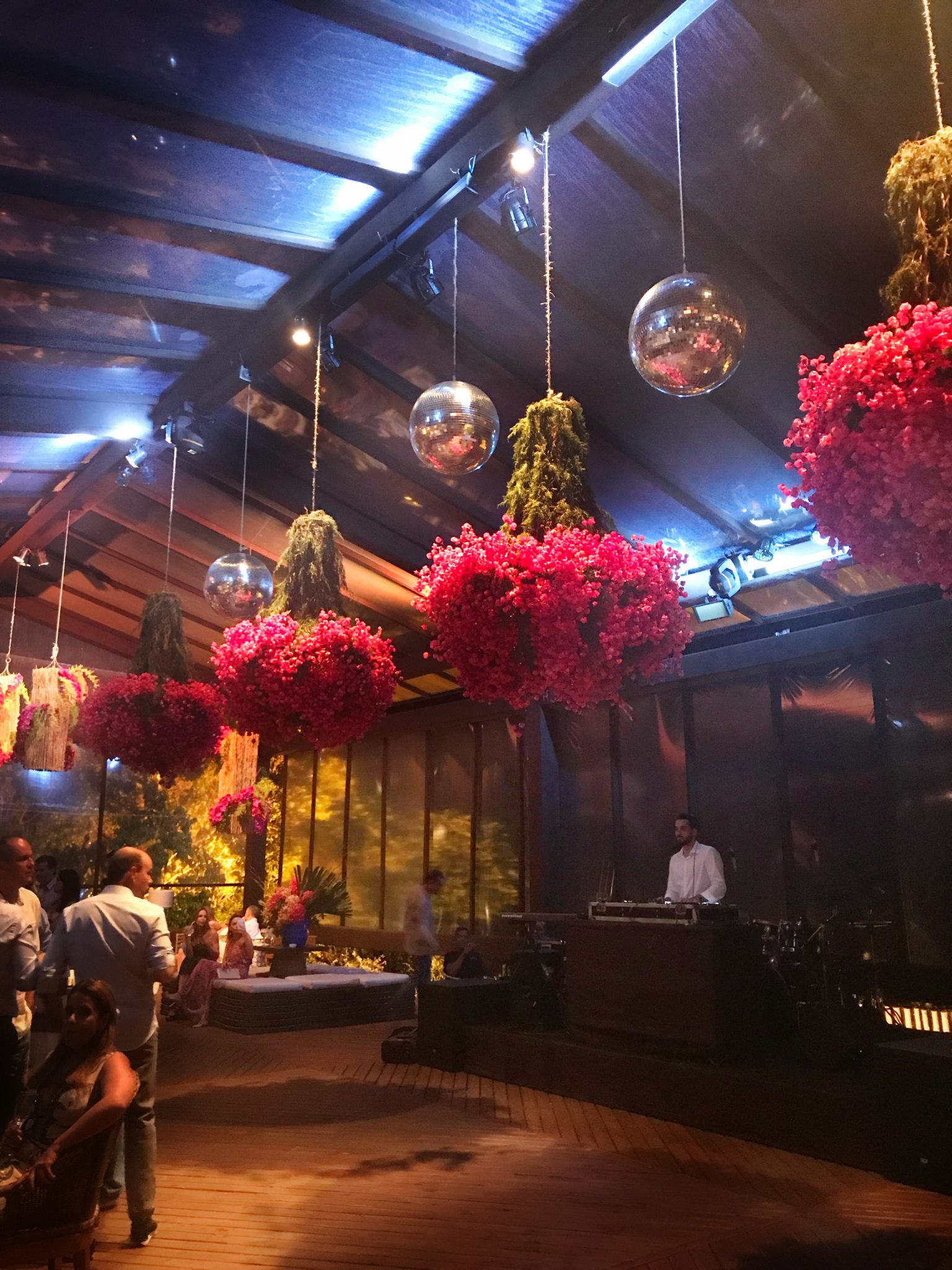 E montou uma mega-produção: um salão gigantesco foi montado para a noite, com flores, mesa de doces belíssima, jantar assentado serviço bistrô, dj, banda, tudo tudo o que uma festa aqui na cidade tem! Eu imagino a logística para tudo isso acontecer em um local afastado como esse, em uma semana de chuva e uma estrada de terra de difícil acesso! Merece palmas! Muitas!