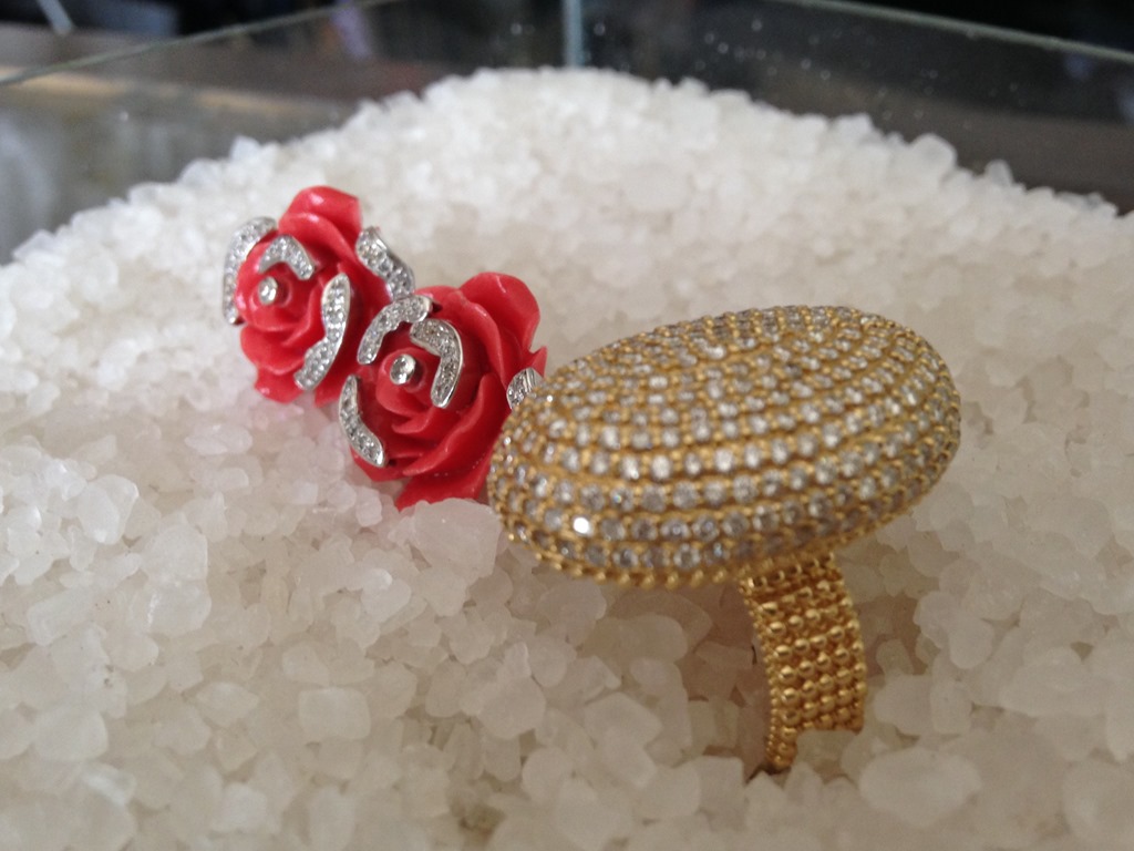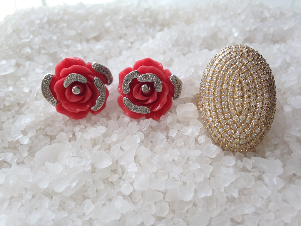 brinco rosas com bordas em brilhantes ——- 10 x 200,00 = 2000,00