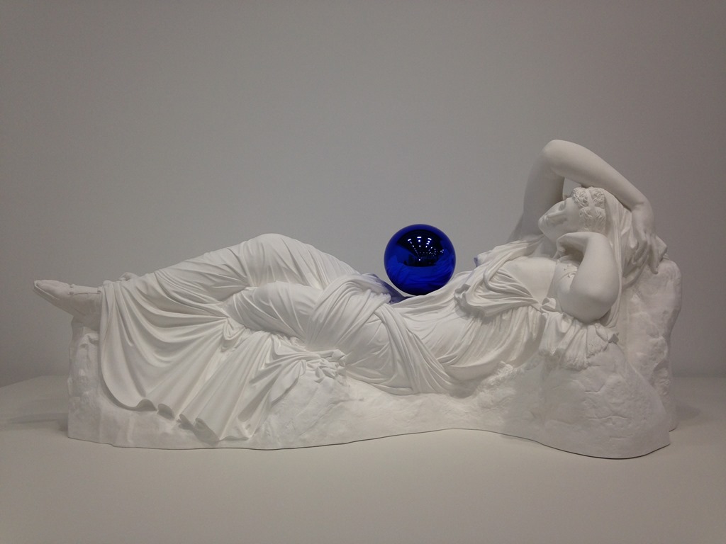 A foto acima é da última fase de Koons e sua proposta é moldar esculturas antigas e transformá-las em suporte para esferas chamadas gazing ball, simples globos que decoram os jardins americanos.