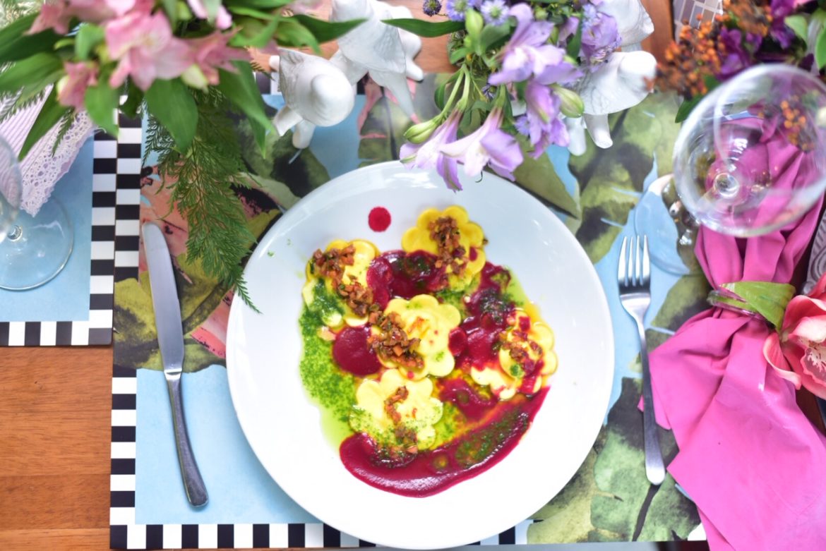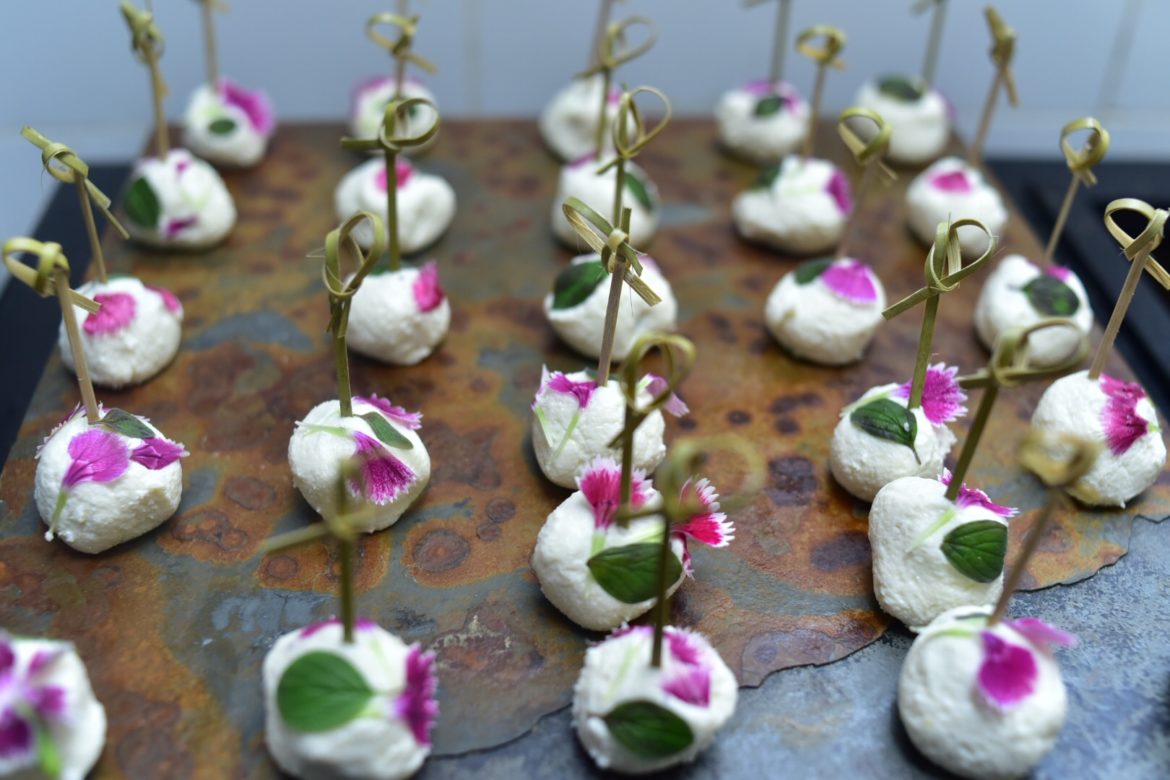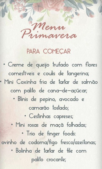 Acima de tudo, quando você quer entrar de cabeça em um tema, é importante ter um chef que sonhe com você. Assim que passei o briefing para ele, na mesma hora comecei a receber dele as sugestões de pratinhos e comidinhas em formas de flores, inclusive.