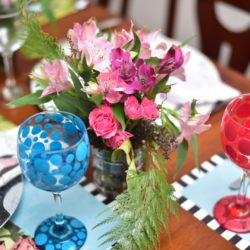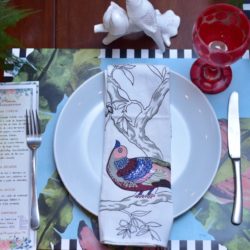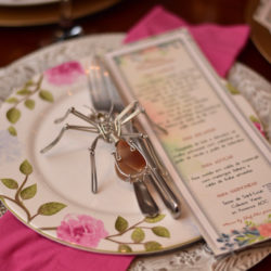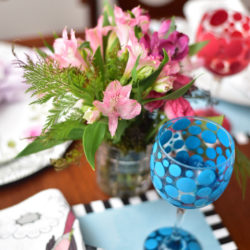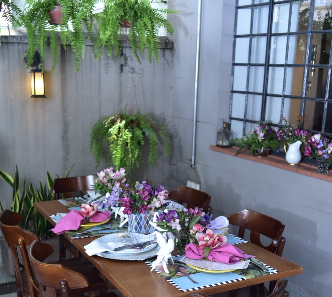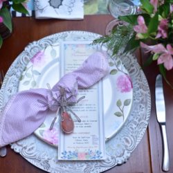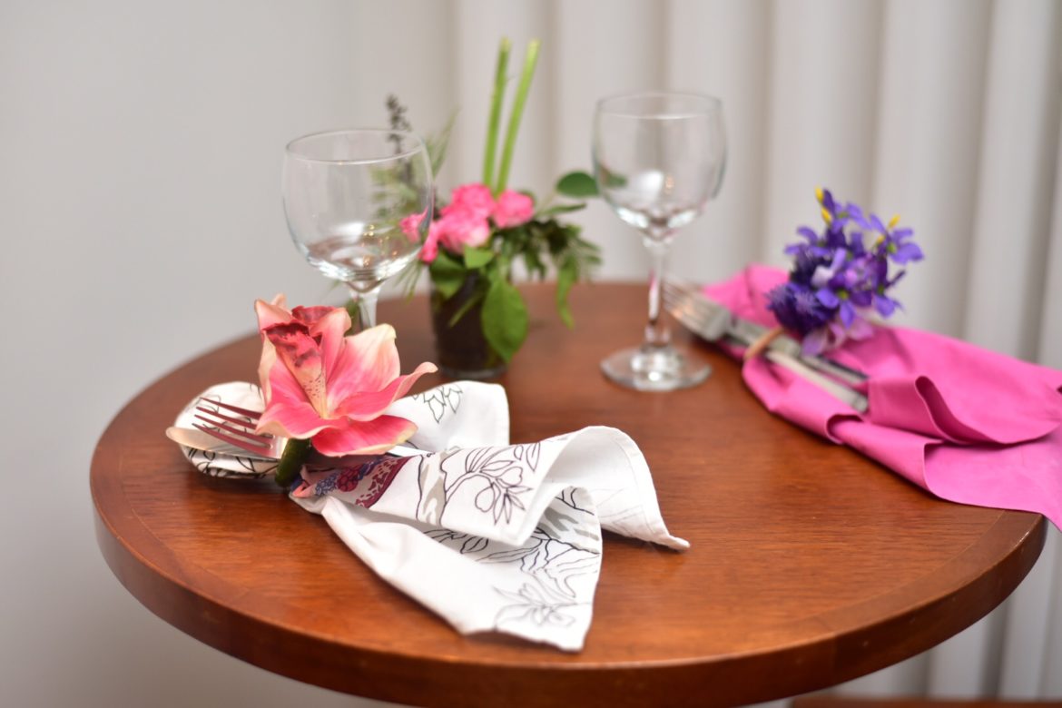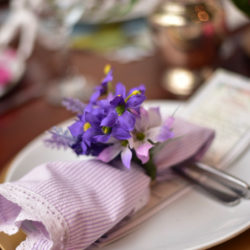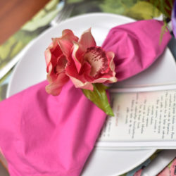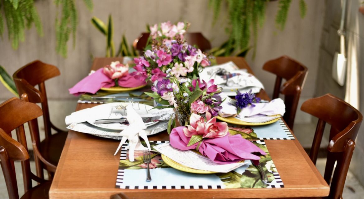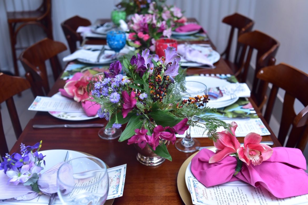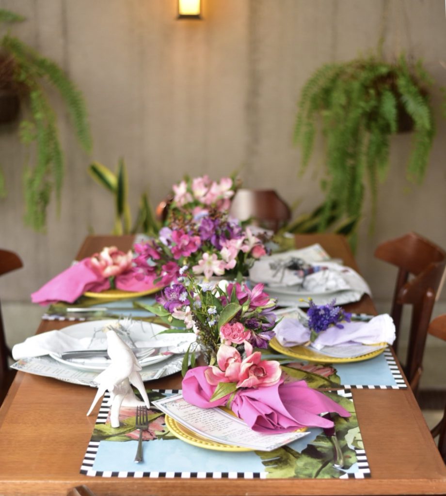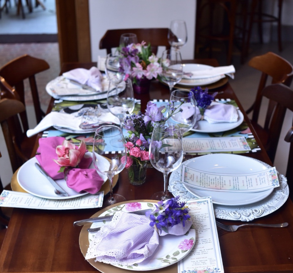 Repare que nem um lugar de cada mesa era igual ao outro. Embora obedecessem uma mesma cartela de cores e o mesmo tema – Primavera – eu me permiti brincar com essa diversidade. Pratos, sousplats, guardanapos, porta-guardanapos, todos eram parte de um conjunto, porém funcionando individualmente.