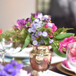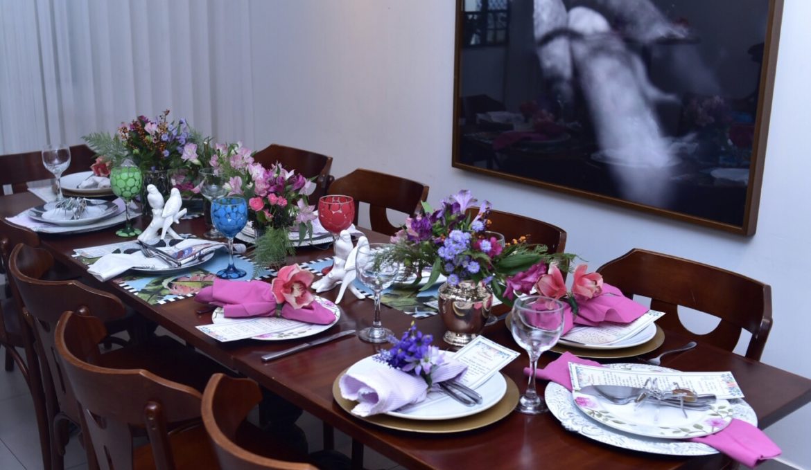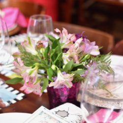 Eu queria que o 1o. Evento Primavera Joias PD fosse super lindo em todos os sentidos, tanto nas flores, quanto nos sabores. Dessa forma, pensando nisso, fui eu mesma na HOLAMBELO e comprei as flores nos tons de rosa e lilás do convite virtual e montei cada arranjo, um a um.