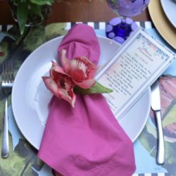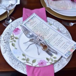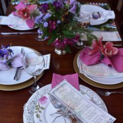 Toque de elegância: de fato, eu amo CARDÁPIOS IMPRESSOS combinando com a louça e as flores! Acho que faz toda a diferença!