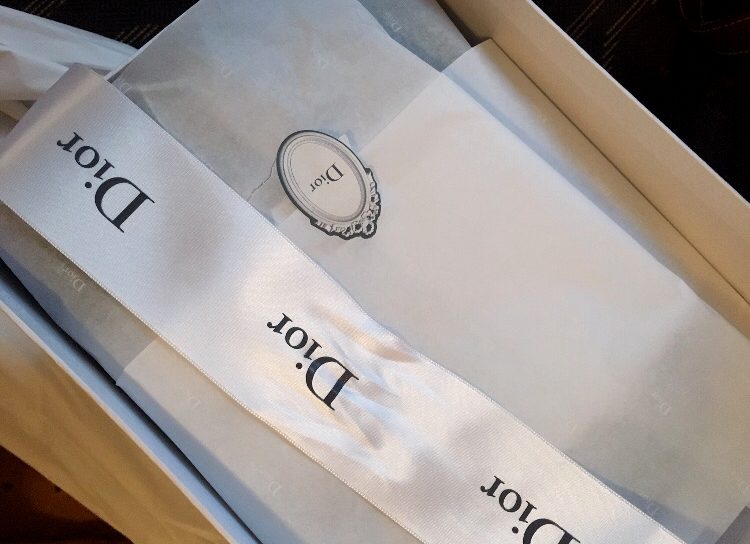 A embalagem da Dior começa com uma sacola e dentro vem a caixa, ambas em papel luxuosíssimo e com o nome sempre escrito em todas as etapas.