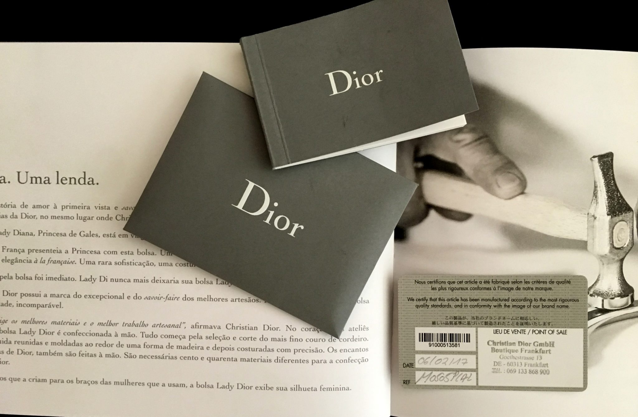 Fico impressionada com os manuais que são fornecidos pela Dior. Além do Guia de Manutenção ( dos cuidados que você deve ter com o produto ), ainda vem um livreto sobre a bolsa em questão, nesse caso, a Lady Dior da foto, um dos ícones da marca. Além disso, ainda um certificado magnético com código de barras, local e data da compra, indispensável mesmo nesse mundo de tantas falsificações.