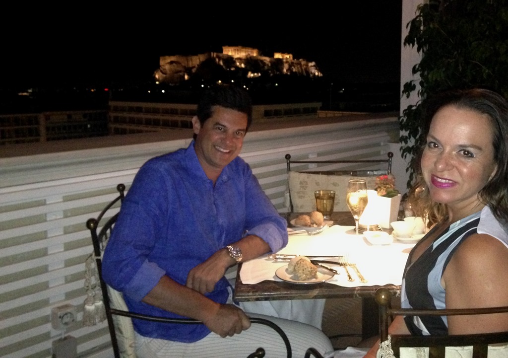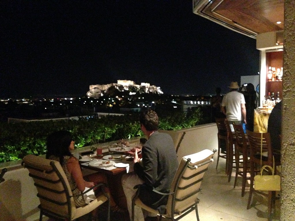 Janta-se assim : de cara para a Acrópole iluminada. E nesse glamour!
