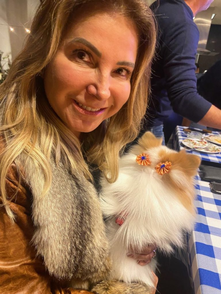 Minha amiga Roberta veio com traje invernal, mas caprichou na maria-chiquinha xadrez da Kiki.