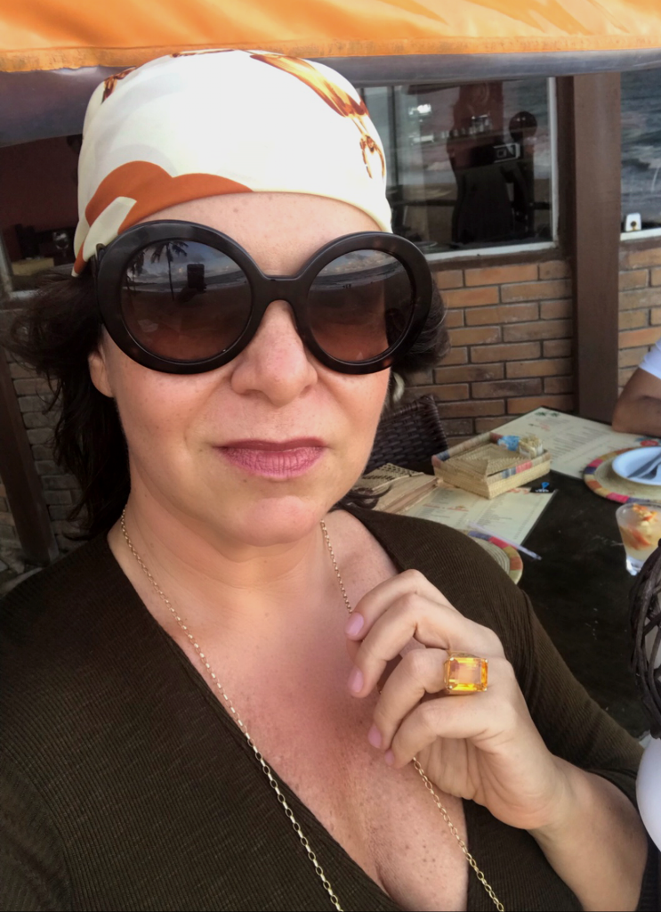 O anel de citrine e a corrente longa foram algumas das joias que levei para essa viagem. Acho que joias têm o poder imediato de mudar o look com muita personalidade. São chiques e não ocupam espaço na mala.