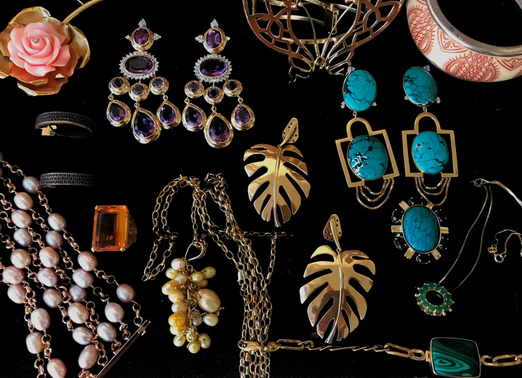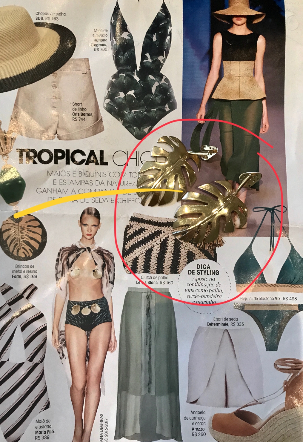 Escolhi usar joias que conversassem com o ambiente: Brinco Tropical e Pulseira Verde-Mar.