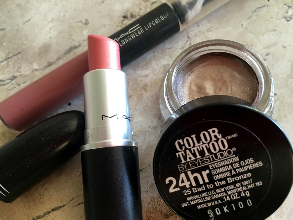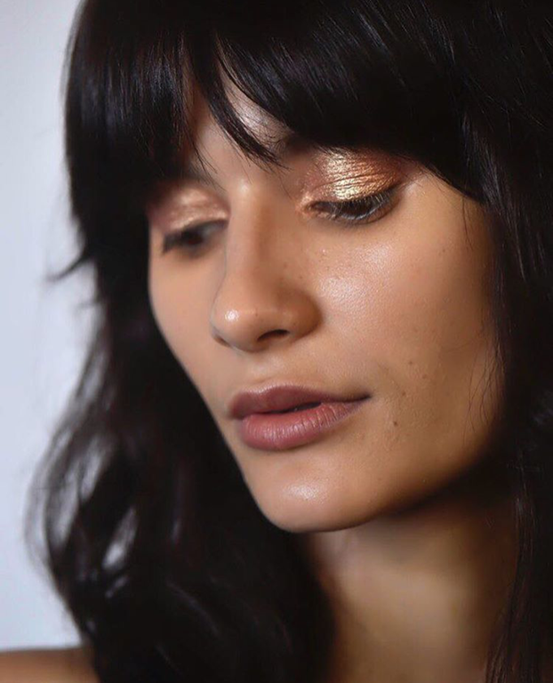 Usei sombra cremosa bronze MAYBELLINE para obter esse tom meio dourado e esfumei com sombra marrom MAC. Aliás, o batom nude e gloss nude também são da MAC.