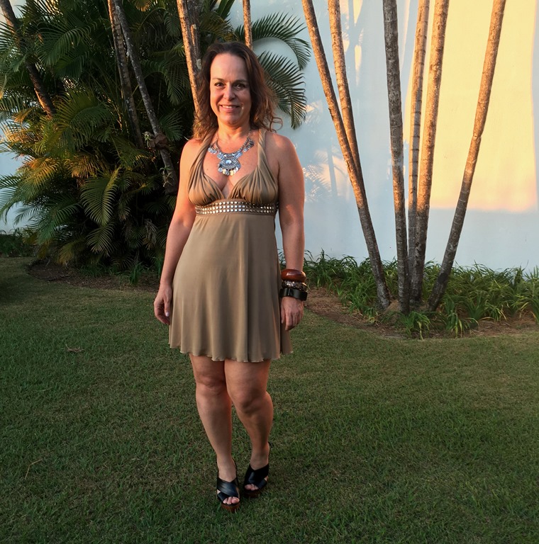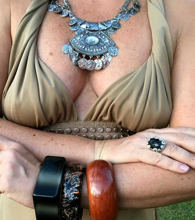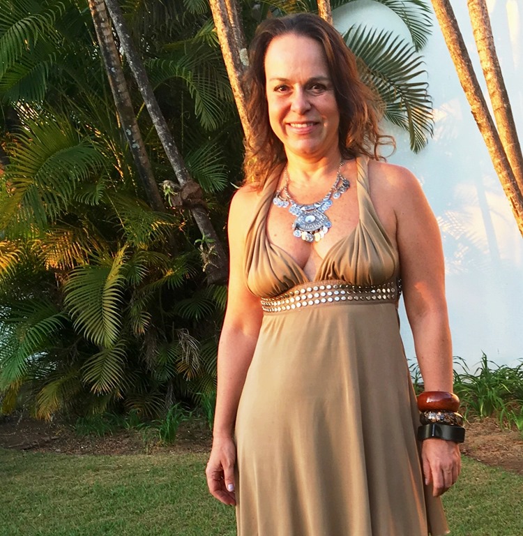 Look também nos mesmos tons para receber num fim de tarde desses, embora seja outono, mas com cara de verão . O vestido JEFFERSON KULLIG para CLÔ é super antiguinho, entretanto ficou ousado com os acessórios étnicos pesados , contrastando com a leveza do jersey.