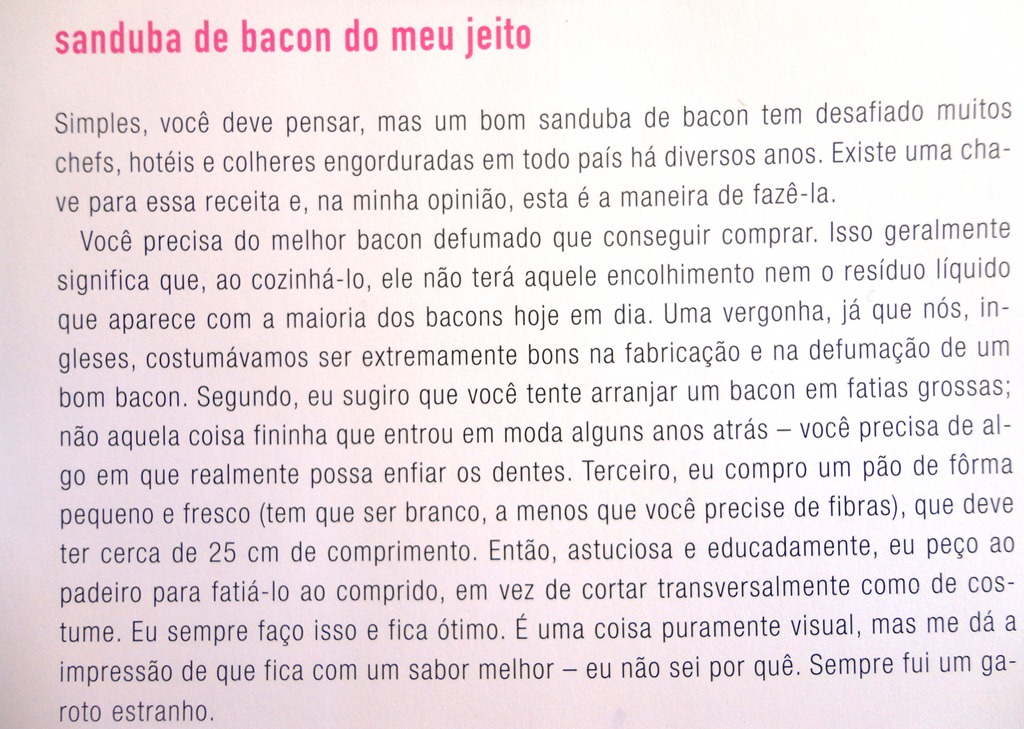 E agora uma receita para agradar muito “ maridos e afins “ no domingo,feriado, ou até no Dia ds Namorados . SANDUICHE DE BACON – diz Jamie Oliver que não há nada que os agrade mais … e acho que eu concordo !!!! rsrrs … pela cara dele … rsrsr … e do meu …