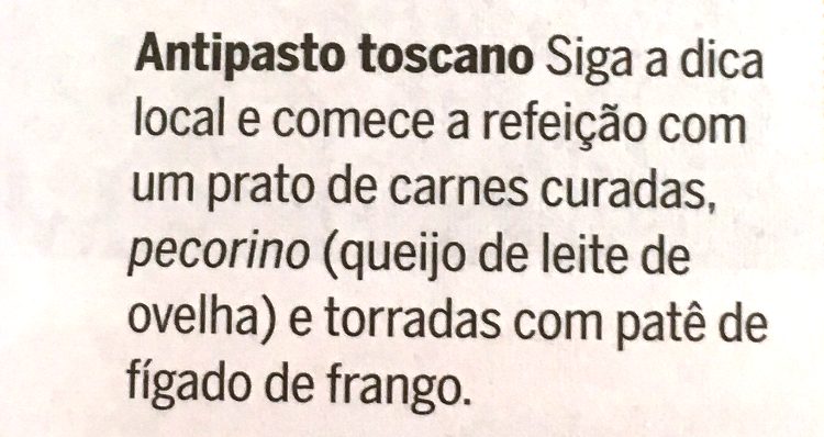 Afinal : o que é a comida típica de Florença? A cozinha Toscana é constituída principalmente por pratos e doces tradicionais que mantém suas receitas inalteradas por muitos anos. É uma comida tradicional camponesa. O primeiro produto que não se encontra igual em nenhuma parte da Itália é o pão toscano. Caracterizado pela falta de sal, parece que o costume de fazer esse pão remonta ao século XII, quando, no auge da rivalidade entre Pisa e Florença, Pisa bloqueou comércio de cloreto de sódio precioso.