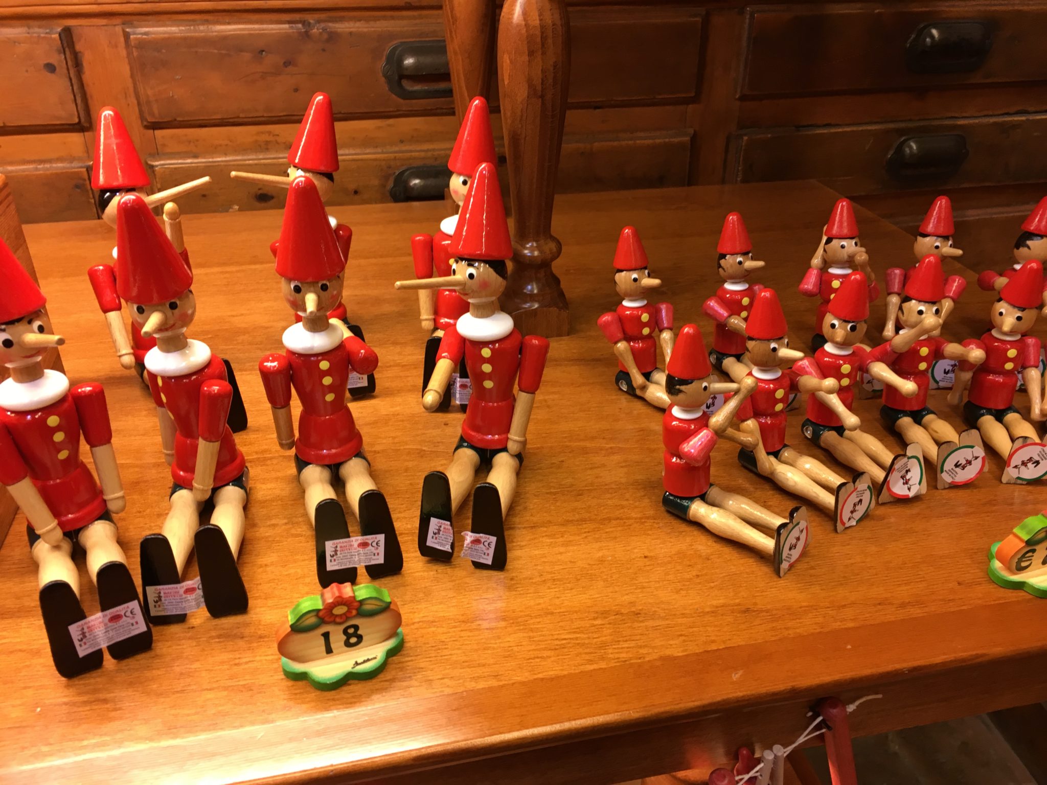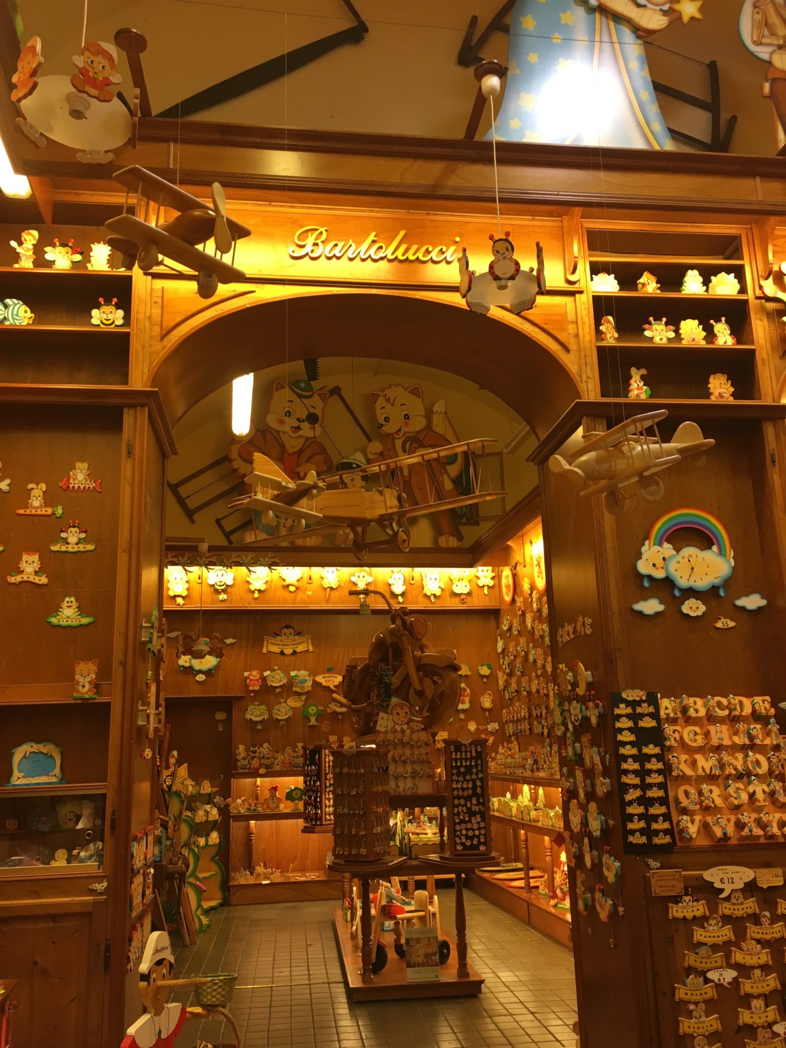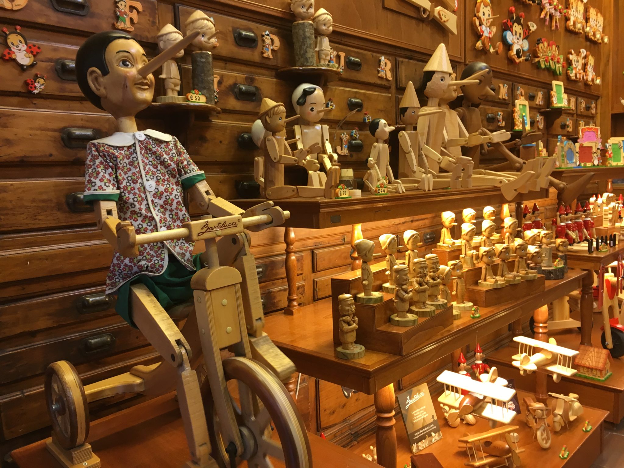 Mas enfim, eu não sabia da existência dessa loja e tomei um choque quando vi! E fui pesquisar – enfim: Pinóquio nasceu em 1883 no romance de Carlo Collodi – o entalhador Geppetto criou esse boneco de madeira que queria ser um menino de verdade. Tudo isso aconteceu na Toscana, na pequena San Miniato. Bonitinho demais, né?