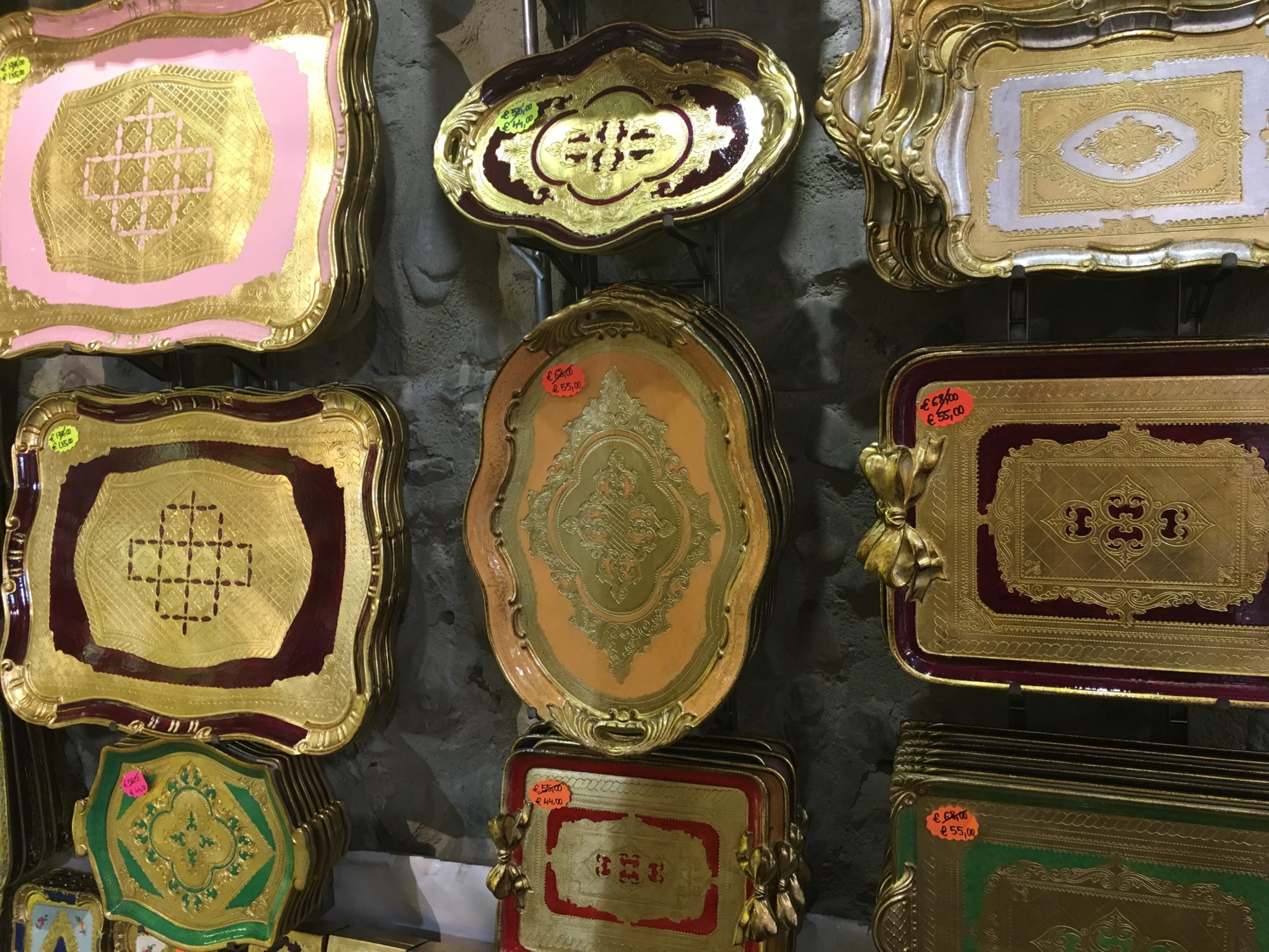 Na mesma rua , muita arte fiorentina -essas peças em madeira pintadas em cores e folha de ouro!