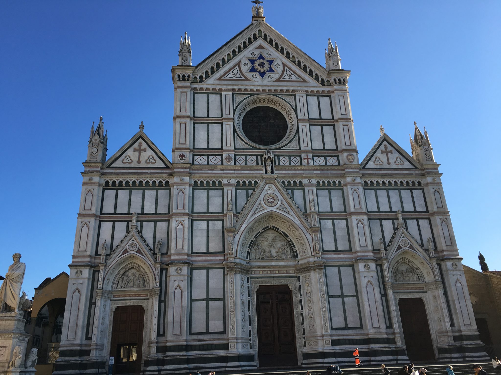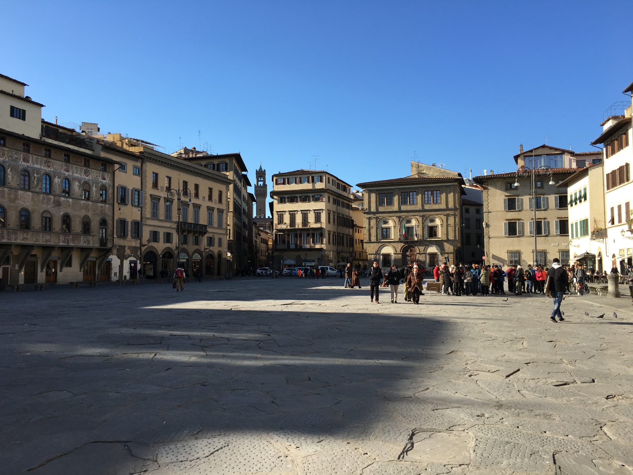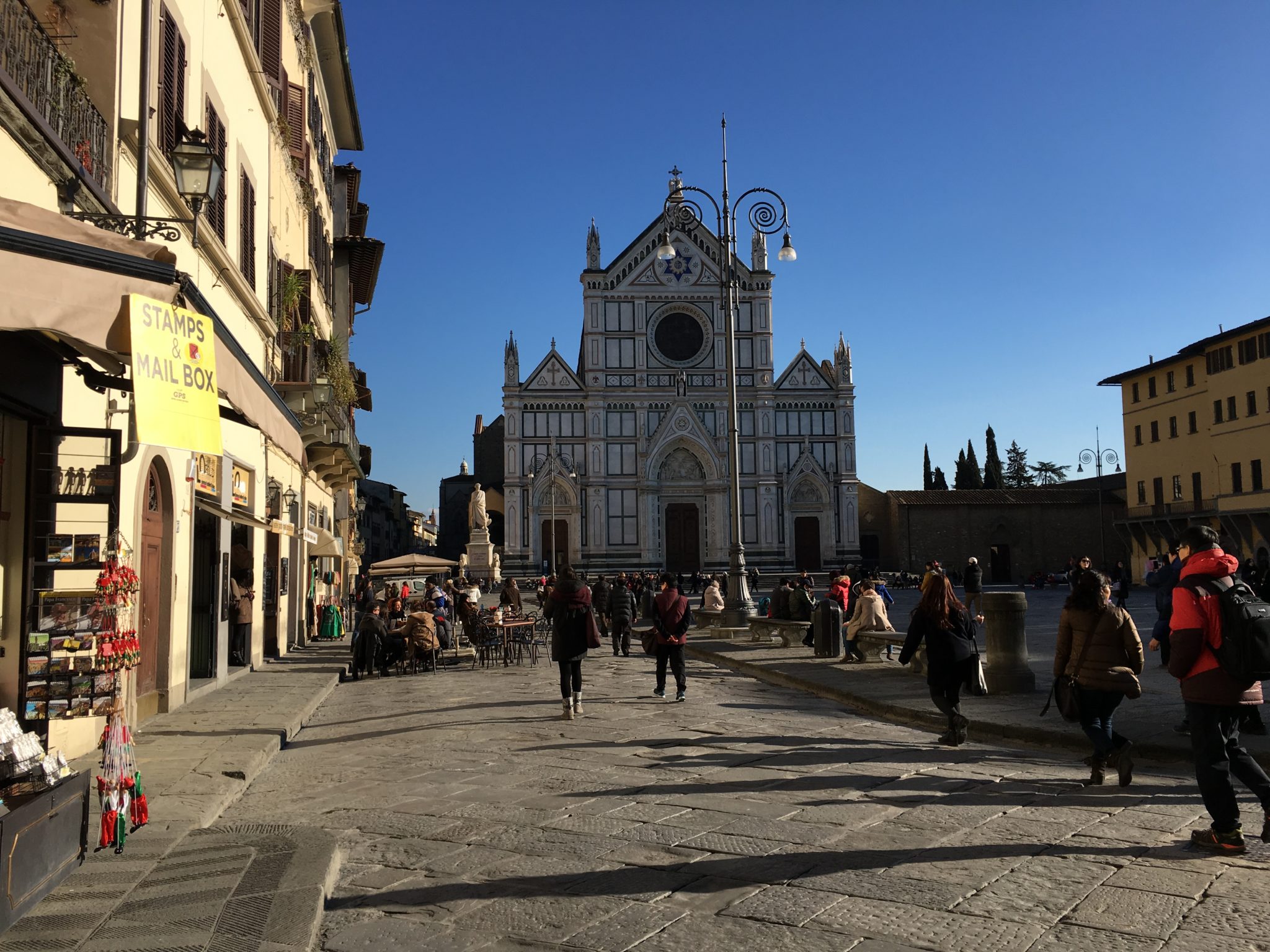 A área no entorno de Santa Croce é uma área mais popular , lotada dessas cantinas típicas deliciosas que existem sempre ao lado dos teatros, praças populares, etc