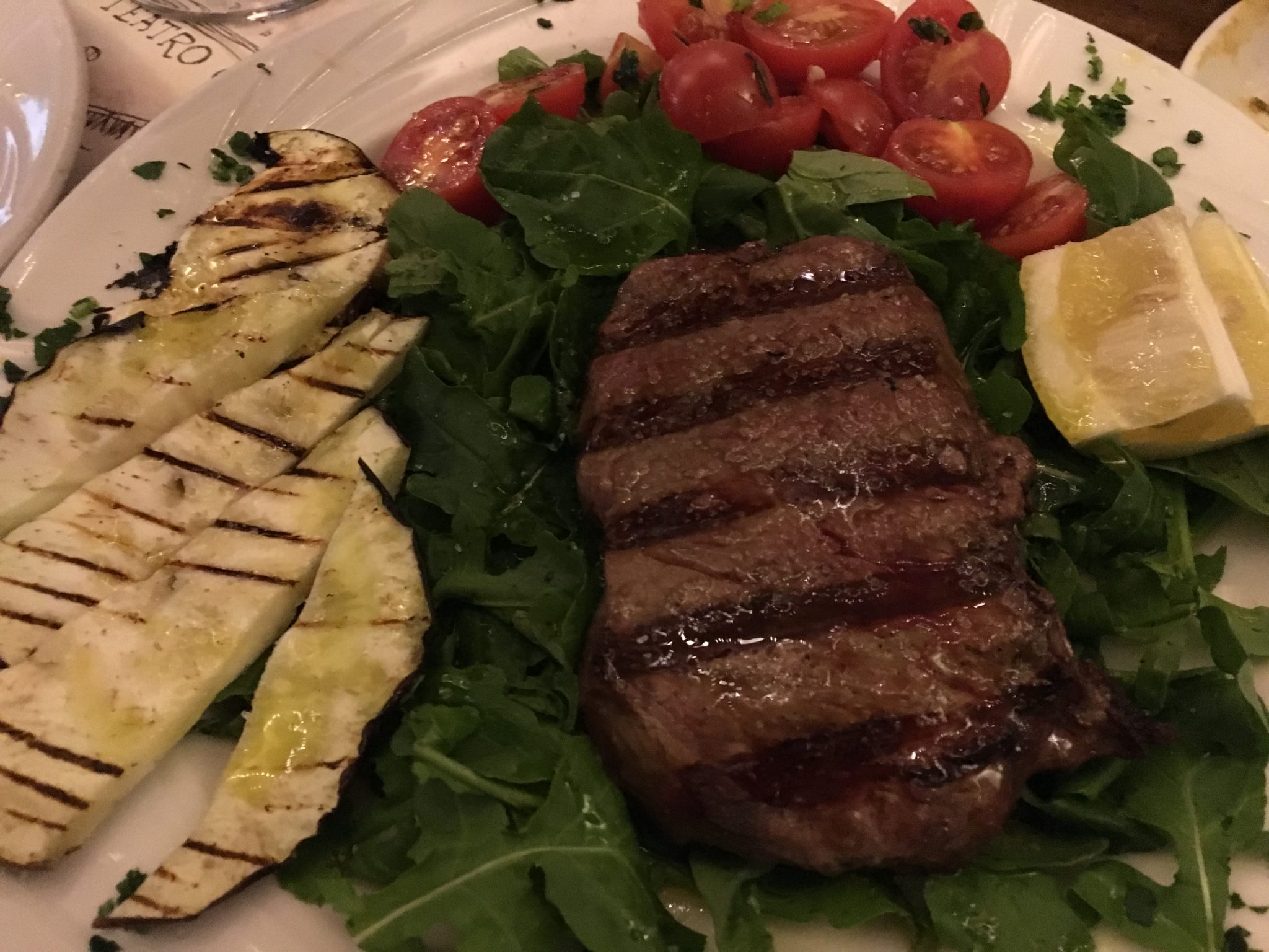 O prato fiorentino por excelência, servido como secondo piatto. É um corte alto com osso grosso e macio de carne bovina de raça Chianina, típica toscana, feita mal passada na brasa. O preço no cardápio é sempre de 100g e um pedaço pequeno pesa cerca de 800g, que serve 2 pessoas, mas o ideal é pegar um pedaço de cerca 1,2 Kg. Em geral, ele vem acompanhado de feijão branco bem temperado. O interior da bistecca deve ser macia e suculenta, enquanto os externos devem ser nítidos e parecerem bem assados. A carne deve ter aproximadamente cinco centímetros de espessura, macia e da melhor qualidade. Os vinhos produzidos na zona de Firenze e província que acompanham super bem todos esses pratos são: Chianti Classico, Chianti Colli Fiorentini e Chianti Rufina