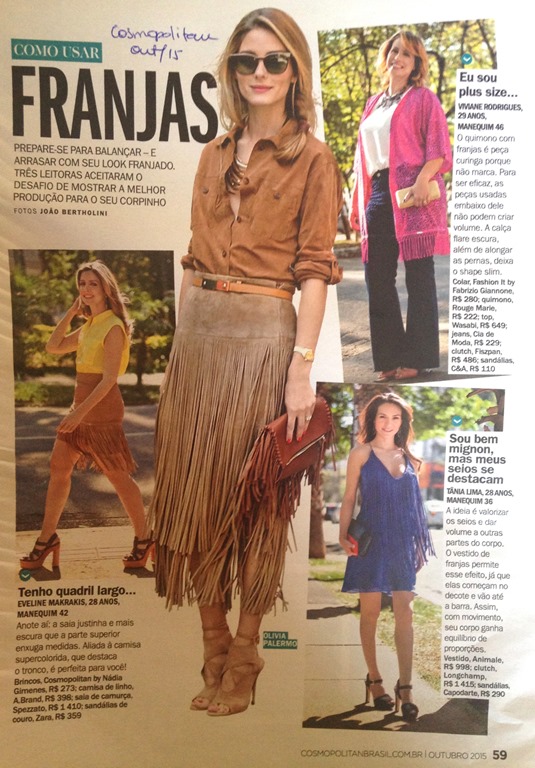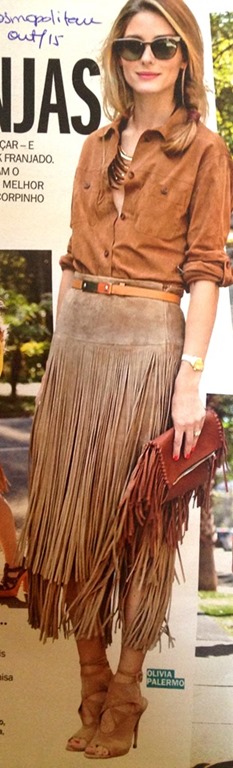 Inspirada nesse look da Olivia Palermo, montei o meu também em tons caramelo e franjas!