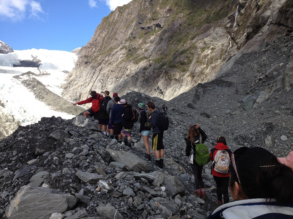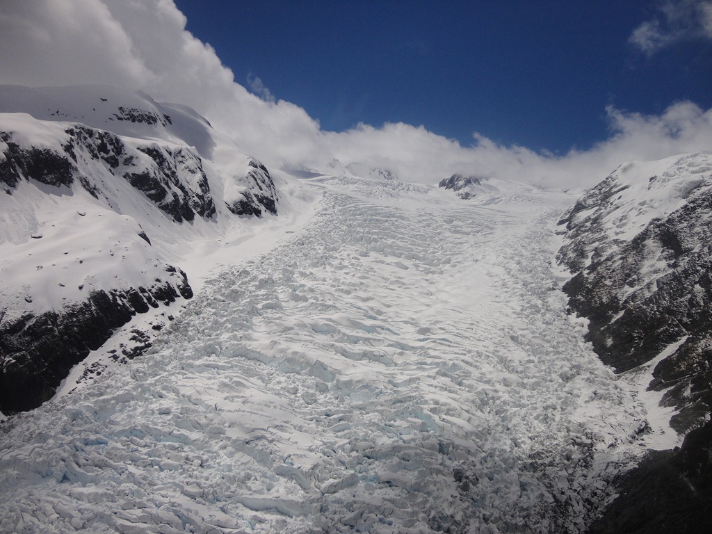 Para quem deseja ver Glaciers de perto, o Fox e o Franz Joseph são os mais populares, e estão a 20 kms um do outro. Existe toda uma infra-estrutura turística montada para que você possa vê-los de maneiras diferentes. Pode-se subir a pé por trilhas demarcadas, de helicóptero, ou de avião. Ambos pousam no topo, e a pessoa desce para um passeio. De helicóptero, vê-se mais detalhes, e sobrevoa-se o Glacier em Zig Zag, como surfando uma onda de um lado ao outro do vale, porém, na parada no topo (por 7 minutos), o Heli não desliga o motor como faz o avião, mas este não sobrevoa o Glacier da maneira que o Heli faz. O ideal é ter possibildades de conhecer os dois Glaciers, um de Heli e o outro de avião. Aliás, o grande lance é fazer o circuito completo, indo e pousando nos 2 Glaciers, e mais uma volta ao redor do cume do Mt.Cook. Eu optei por Helicóptero em um glaciar + Mt Cook, para ter idéia das 2 coisas , num passeio de 30 minutos.