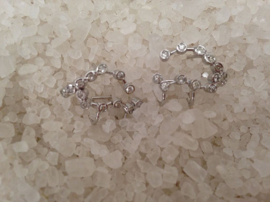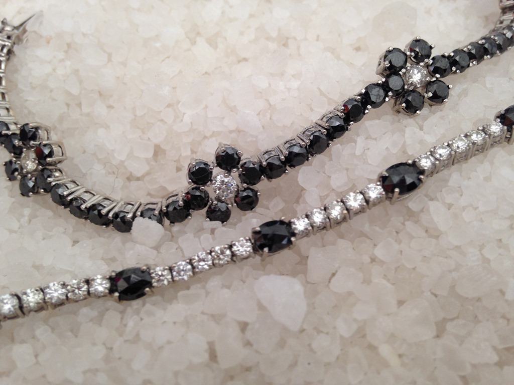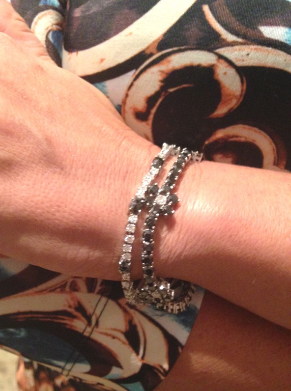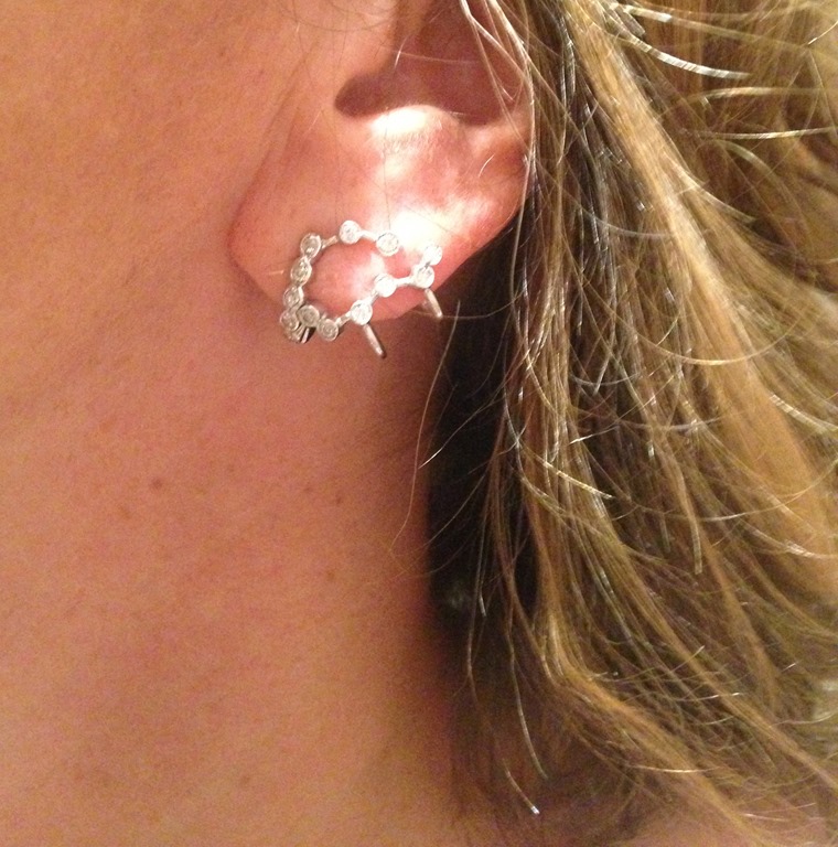 Como a produção era mais modernete, usei apenas um brinco interessante em brilhantes e 2 rivieras de brilhantes brancos e negros.