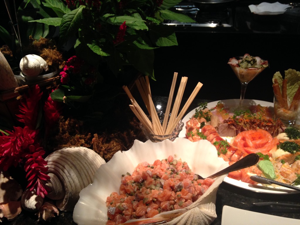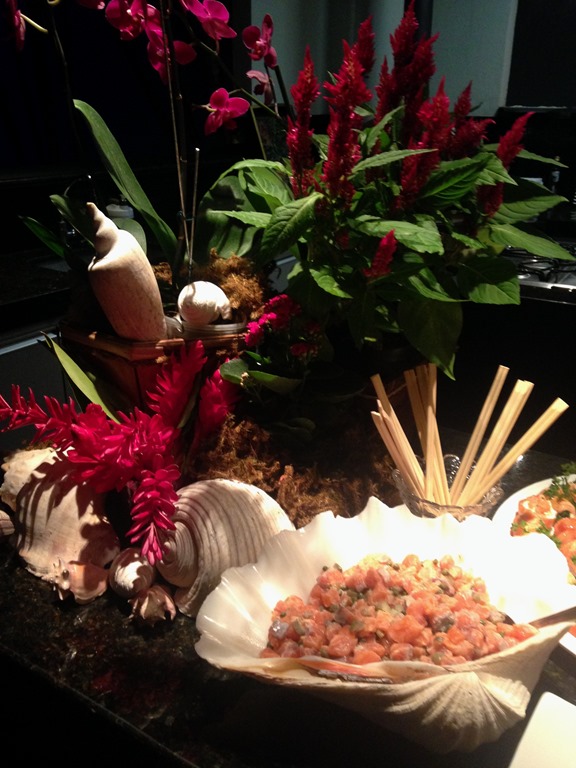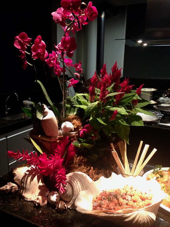 Para a parte de peixes e japa, me inspirei nessa foto da Verde com orquideas e conchas.