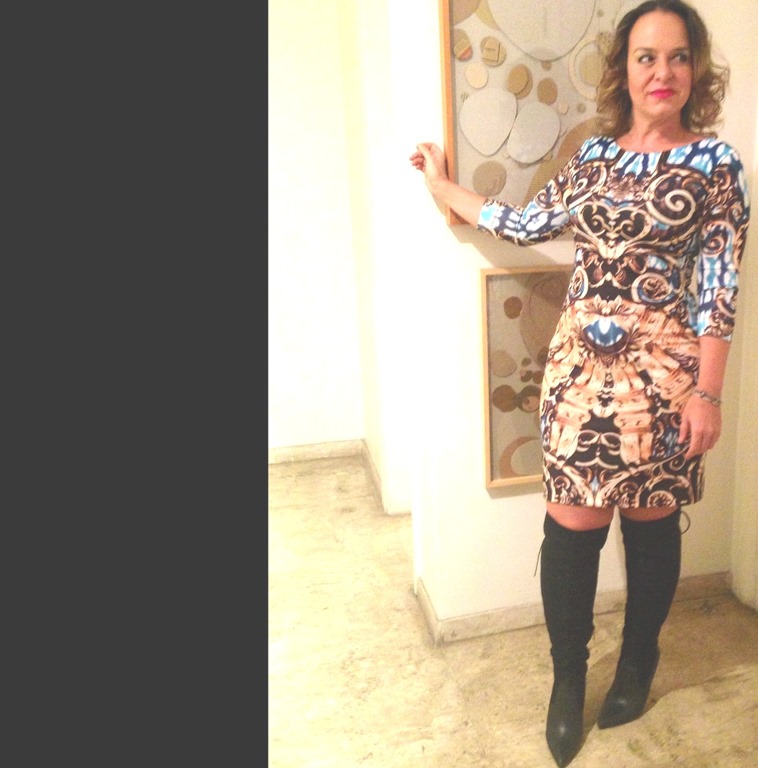 vestido FLECHE D’OR , dessa vez usado com botas cuissardes, e brilhantes JÓIAS PD