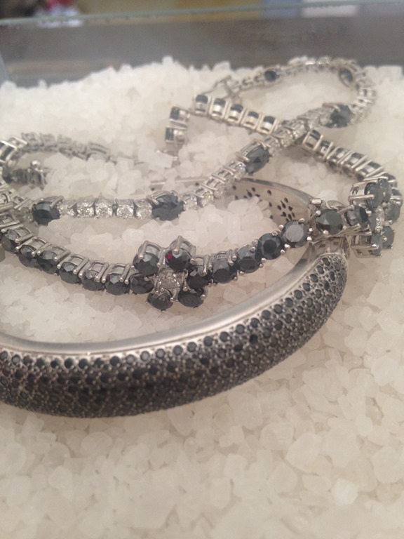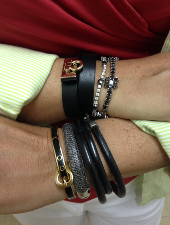 Bracelete de brilhantes + rivieras JOIAS PD com bracelete rigido JUICY COUTURE , bracelete de couro FERRAGAMO + fios de couro acervo. ![]()