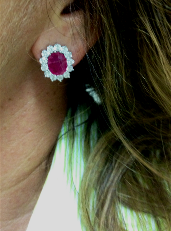 Brinco de rubi com brilhantes ( a pedra é de uma cor linda e os brilhantes são maravis!! ), combinando com o top e com o batom RUBY WOO da MAC