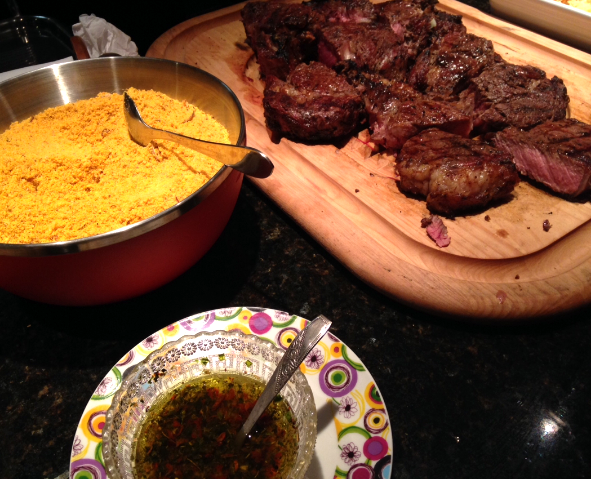 - Optei então por Chorizo na Grelha com batatas também na grelha com molho de roquefort, farofa de bacon , arroz com alho // o vinho TANNAT uruguaio pede isso: carnes fortes, queijos fortes e decantação // MARIDOS AAAMAM ISSO !! rsrs