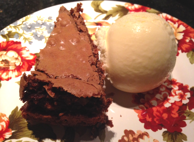 e de sobremesa, uma torta de brownie – receita da Cau Werneck – que faz sucesso aqui!