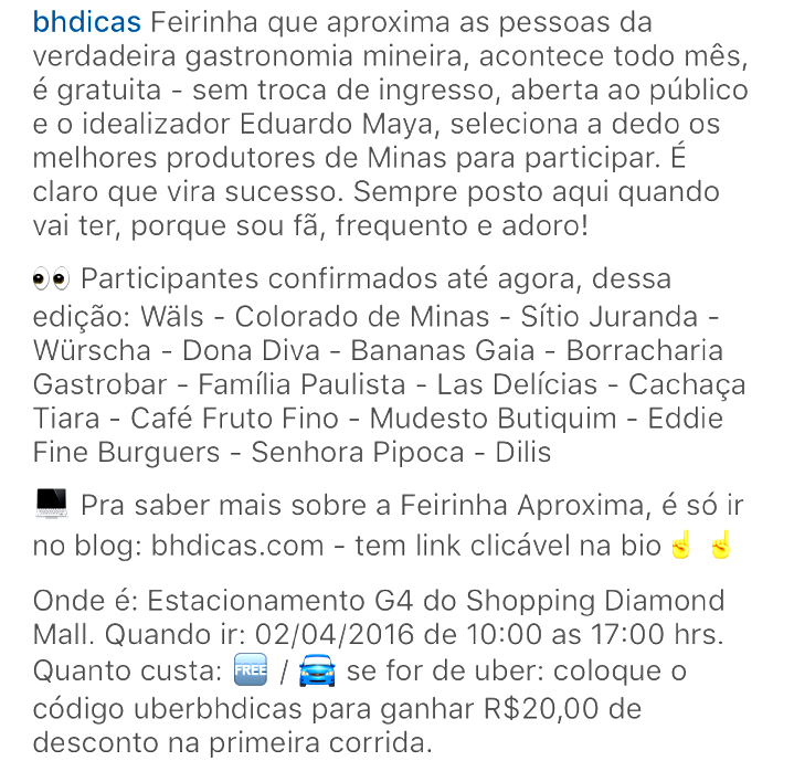 Fui no mês passado pela 1a. vez na APROXIMA que aconteceu nos jardins da Casa Fiat de Cultura. A feira é mensal e itinerante – dessa vez vai ser no Diamond. Interessante ser um evento só de produtos mineiros , tanto para a venda, quanto para consumo. Não tem Coca-Cola , só Mate Couro – prata da casa ! O vinho é mineiro, o espumante também. Comi de entrada um camarãozinho frito ( oops Minas não tem mar! Smiley confuso ) do Armazém do Mar. Come-se em pé mesmo, ou em mesonas coletivas.