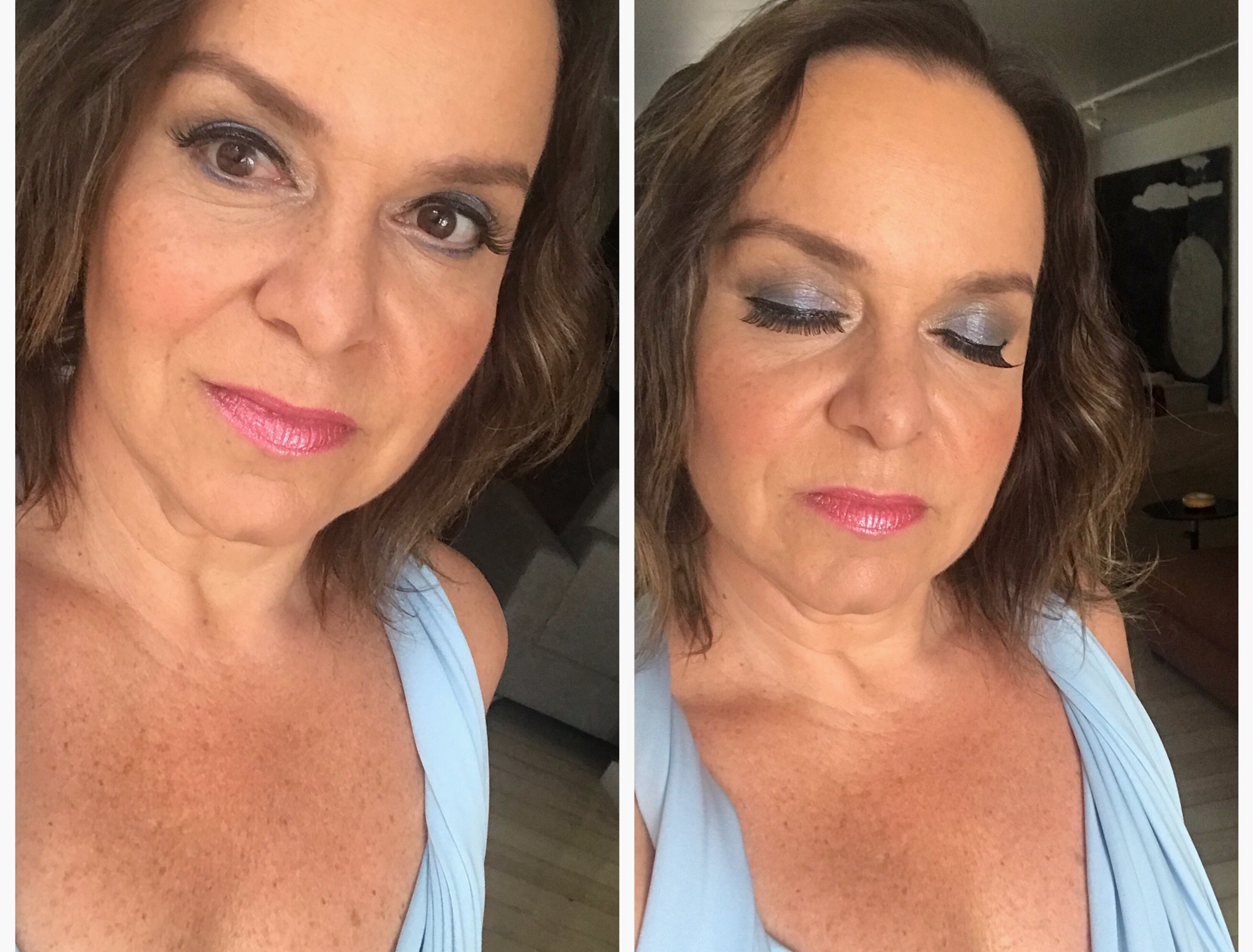 Embora a clutch fosse vermelha, a make trazia um batom rosa clarinho assim como um olho com fundo azul. Dessa forma, fiz minha própria versão como você pode ver abaixo.