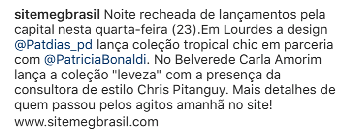 • INSTAGRAM @SITEMEGBRASIL – 24/05/2018