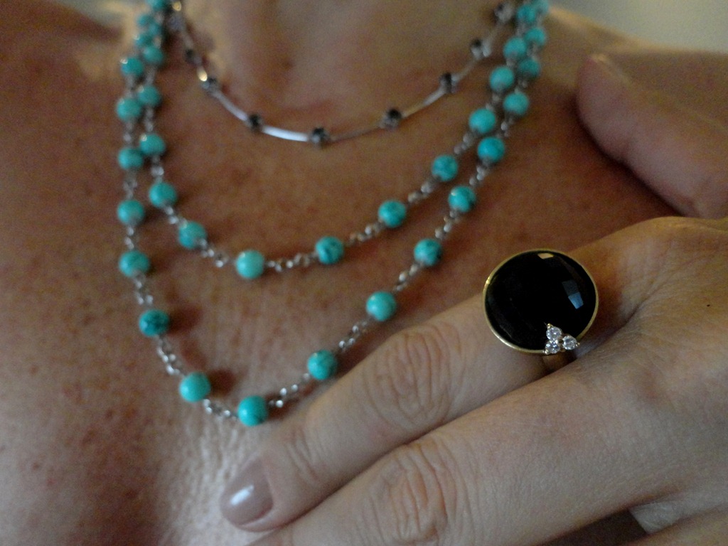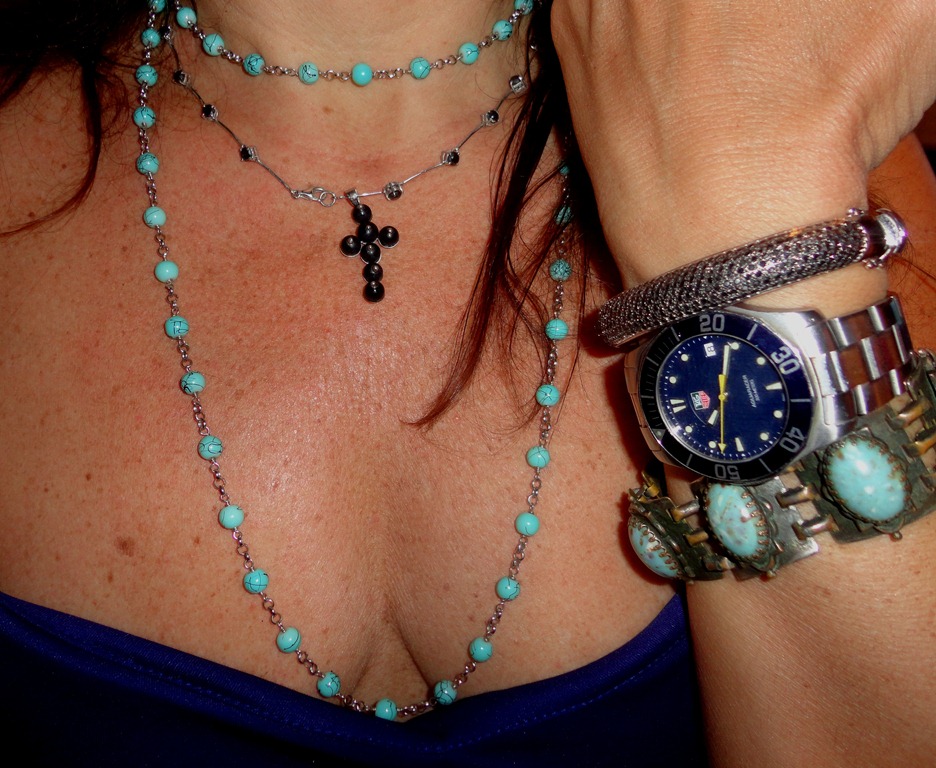 colar longo de turquesas e ouro branco ———- 10 x 360,00 = 3600,00