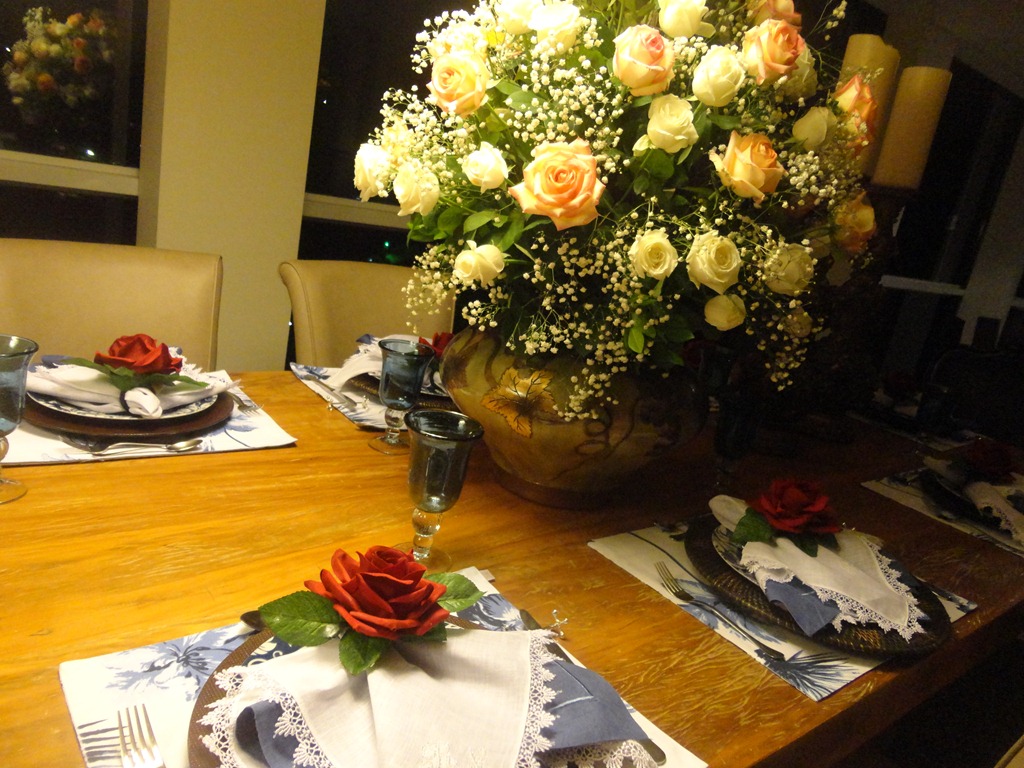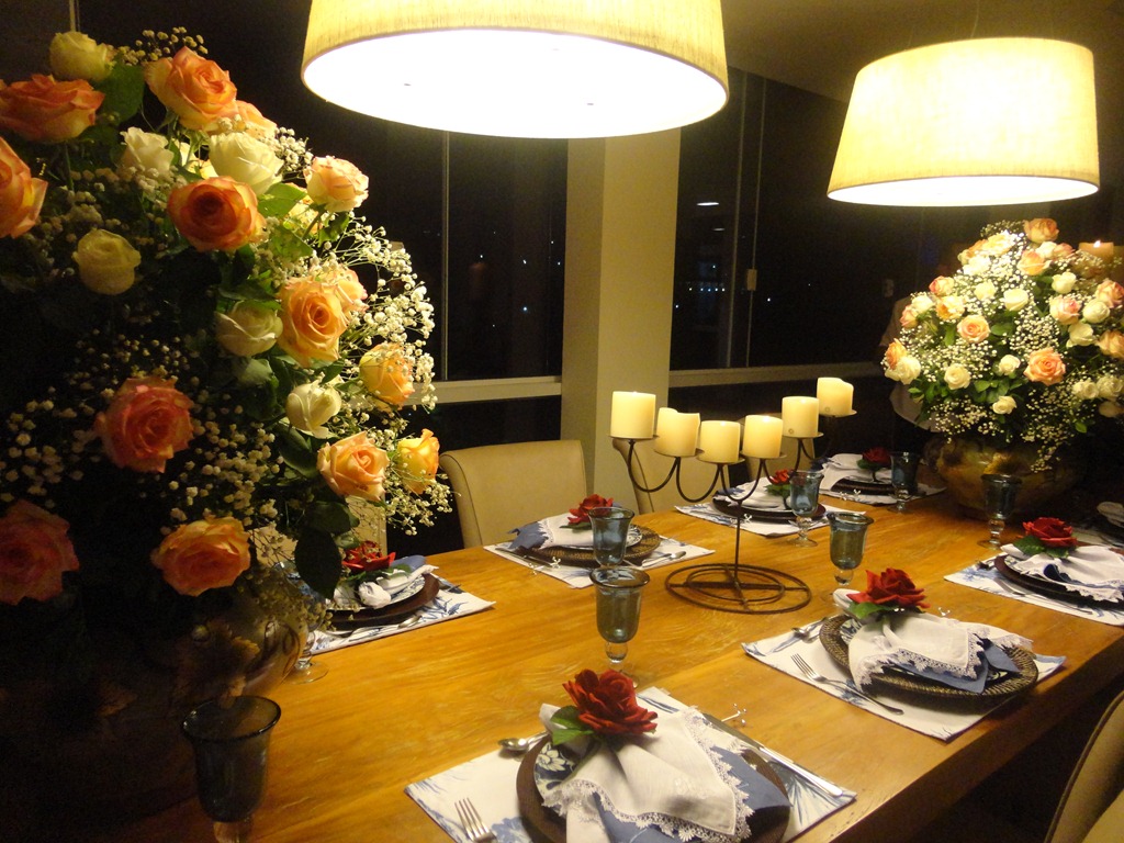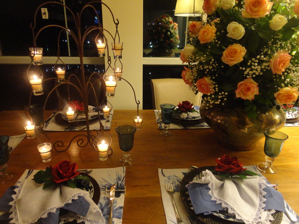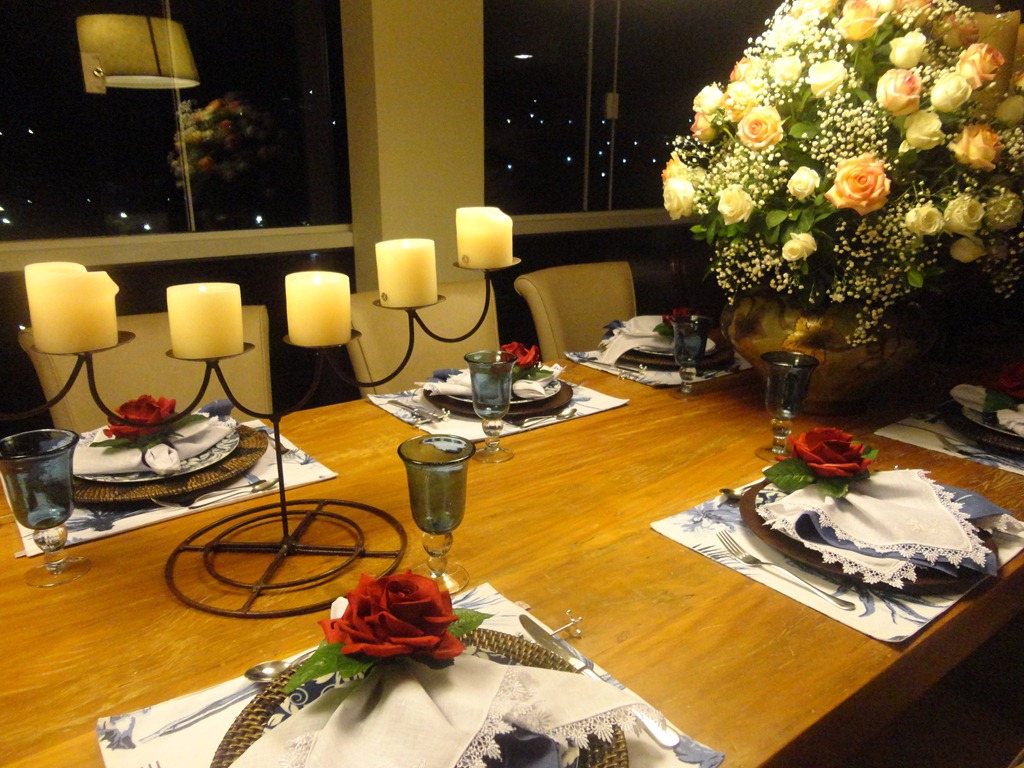 Nessa mesma casa de Escarpas, uma linda mesa montada em azul – TAÇAS LA VILLE –