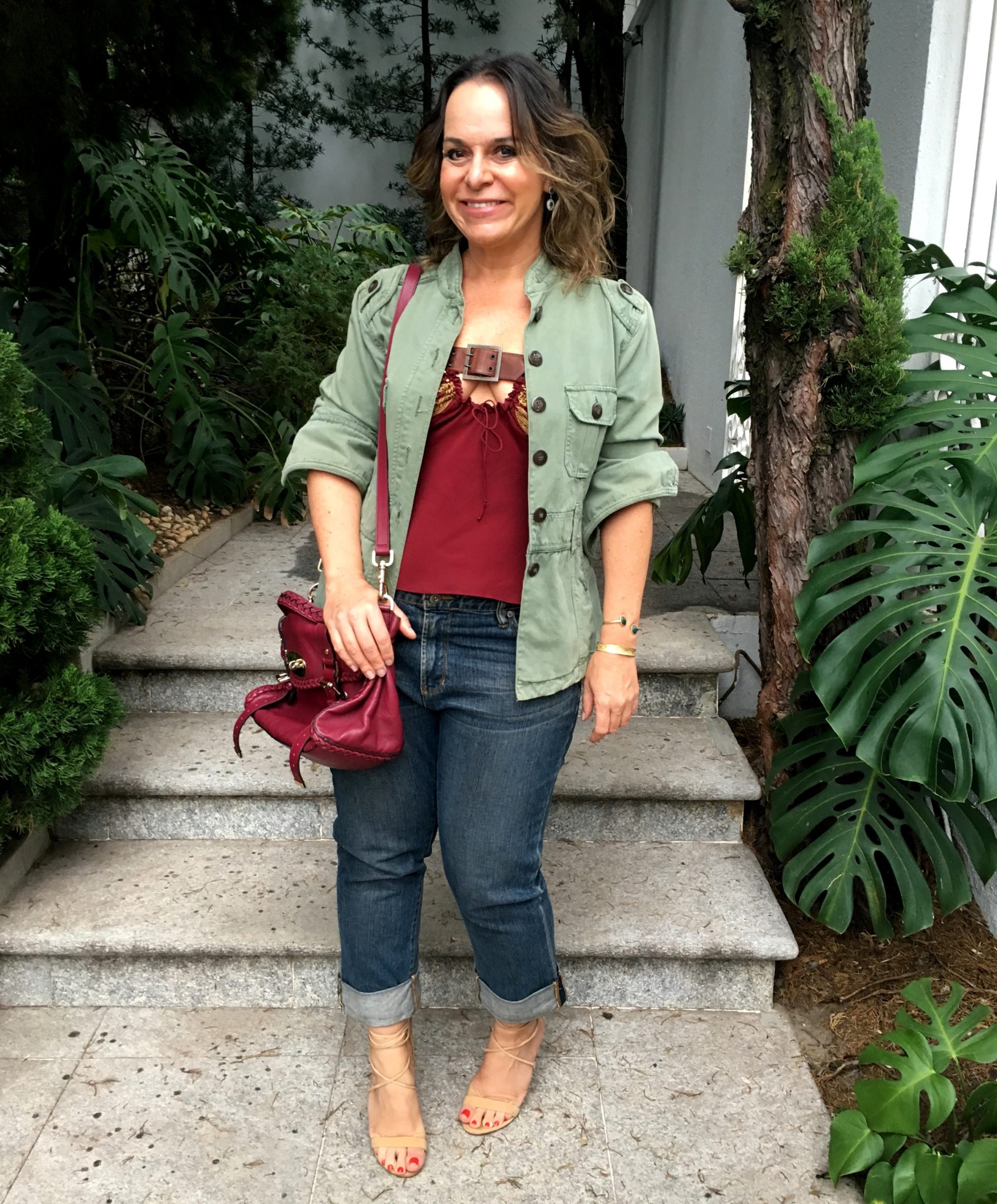 Nas temporadas mais recentes, os designers criaram versões de alfaiataria com a atitude irreverente do passado. Estampas florais são impressas em cima de camuflados, saias lápis são combinadas com jaquetas de oficial e gabardines são usadas com estiletos. Até uma cor foi criada: o verde-militar! Esta estética militar retrabalhada é super moderna e fala à mulher do momento com uma feminilidade forte e praticidade atemporal. E quem gosta, gosta mesmo. Tipo .. Eu! E adoro usar exatamente assim: com toques femininos glamourizando a produção!